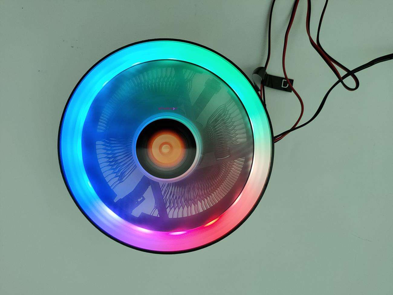 Dołączony wentylator to 120 mm model o maksymalnej prędkości 1800 RPM, przepływie powietrza 38,82 CFM, ciśnieniu 1,48 mmH2O i głośności 26,92 dBA. Wychodzą z niego trzy kable. Pierwszy to 3 pin, który również zasila podświetlenie ARGB. Pozostałe dwa służą do sterowania podświetleniem. Musicie mieć jednak kompatybilną płytę główną, bowiem z kontrolerem redakcyjnym całość nie działa. Rozwiązanie jest o tyle dobre, że jest kompatybilne z każdym sterowaniem podświetleniem ARGB 5V.