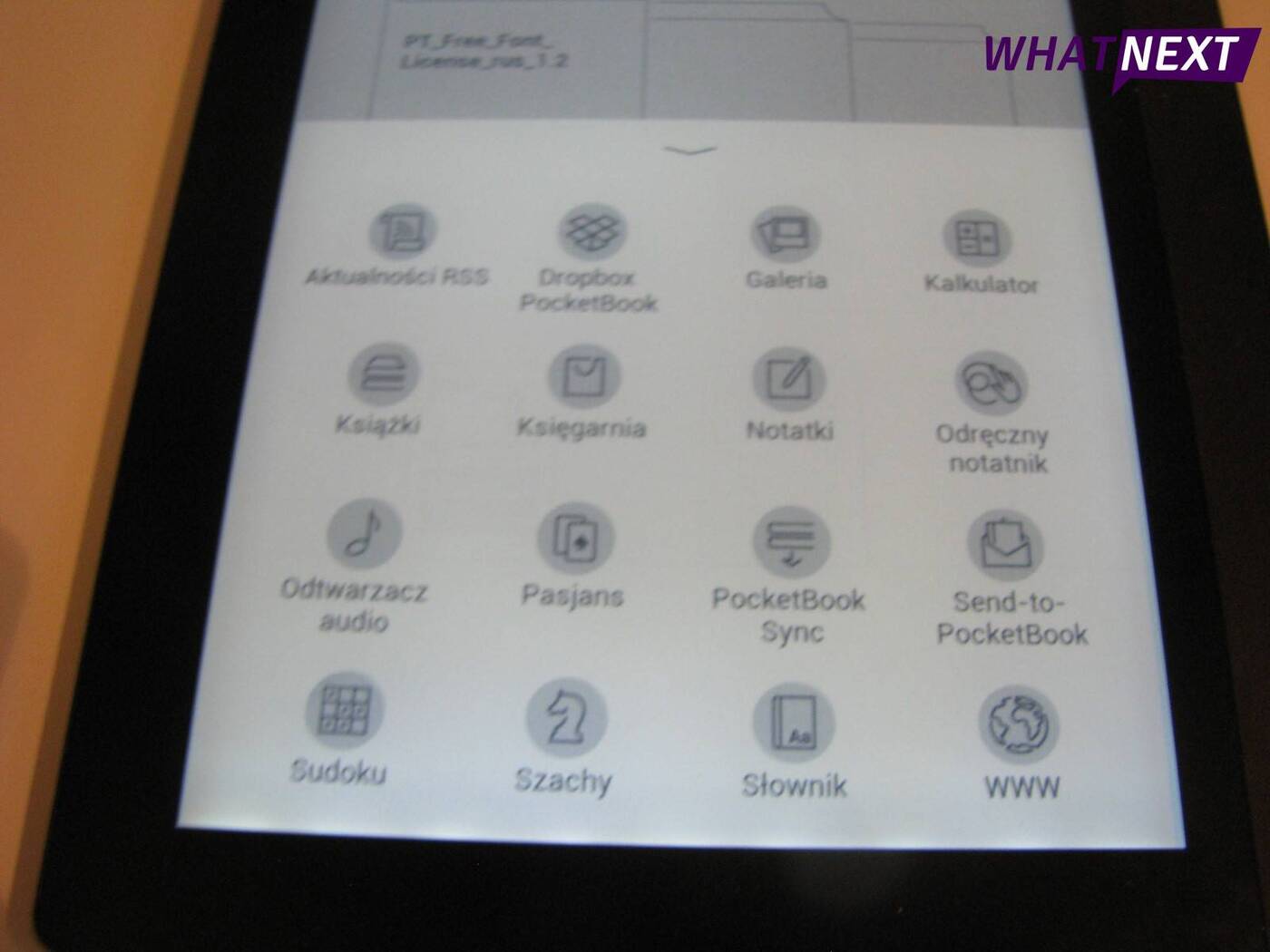 Po włączeniu czytnika ukazuje się menu główne. Z niego można szybko wybrać ostatnio otwierane książki i zobaczyć ile zostało dodanych, a także kiedy to miało miejsce. W lewym górnym rogu znajduje się aktualna data a w prawym informacja o nowych wiadomościach, łączności bezprzewodowej czy poziomu naładowania czytnika. Po rozwinięciu dolnej części ukazuje się ogrom dodatkowych aplikacji i gier. Są tam między innymi szachy, odręczne notatki, przeglądarka zdjęć, odtwarzacz audio czy kalkulator. Bardzo przydatna jest aplikacja Dropbox, która ułatwia komunikację z komputerem czy pakiet słowników. Ciekawa jest także aplikacja RSS, dzięki której można czytać najnowsze informacje z ulubionych kanałów kiedy tylko się chce. Wbudowana przeglądarka jest taka sobie, działa powili i ja podczas testów traktowałem ją bardziej jako bajer niż przydatne narzędzie. Dzięki 512 MB pamięci RAM InkPad bardzo szybko wczytuje nowe pliki – zmiana stron także następuje stosunkowo sprawnie.