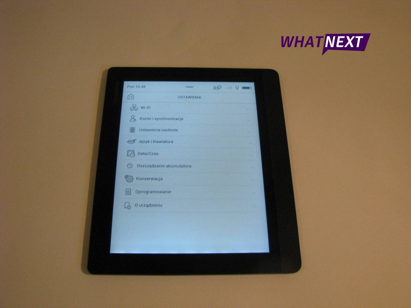 Jakość wyświetlacza jest wyśmienita. Wszystko jest bardzo wyraźne, a dzięki dużemu, 8-calowemu wyświetlaczowi czytanie bardziej przypomina tradycyjne książki. Świetnym krokiem było umieszczenie zmiany jasności podświetlenia na przedniej części urządzenia – w nocy znacznie ułatwia to pracę z czytnikiem. W dzień, w pełnym słońcu także wszystko jest bardzo dokładnie widoczne. Obsługiwanie tekstu jest banalne. Generalnie są trzy opcje dotyku ekranu – szybkie dotknięcie przewija stronę (praktycznie bezgłośna alternatywa dla przycisków z boku), dłuższe przytrzymanie otwiera narzędzie zaznaczania a kliknięcie w środku ekranu otwiera menu. Można w nim zmienić tryb wyświetlania stron (dopasuj szerokość, cała strona, kolumny czy rozpływ), obrócić w dowolną stronę tekst (niezbędna opcja dla osób leworęcznych), czytać na głos, wprowadzić notatkę czy przejść do słownika. Jedynie także tutaj można wyjść z tekstu. Szkoda, że taka opcja nie została zaimplementowana z łatwiejszym dostępem do niej. Można także udostępniać opinie za pomocą ReadRate oraz zmienić ustawienia tekstu, takie jak czcionkę czy jej wielkość (maksymalnie 82). Ważne jest, że jakość tekstu nie traci wraz z bawieniem się opcjami- tekst jest zawsze perfekcyjnie ostry. Ilość opcji jest znacznie większa i książkę można bezpośrednio dostosować do wymagań w czytniku, nie trzeba jej edytować na domowym pececie. Czytnik pozwala także na otwierania obrazów czy plików MP3. Te drugie można tylko przy włożonych słuchawkach. Obie opcje działają także całkowicie bezproblemowo. Ważne są także ustawienia. Można w nich skonfigurować WI-Fi, konto i synchronizację, wybrać język czy pobawić się trybem oszczędzania energii oraz skonfigurować całą masę innych opcji.