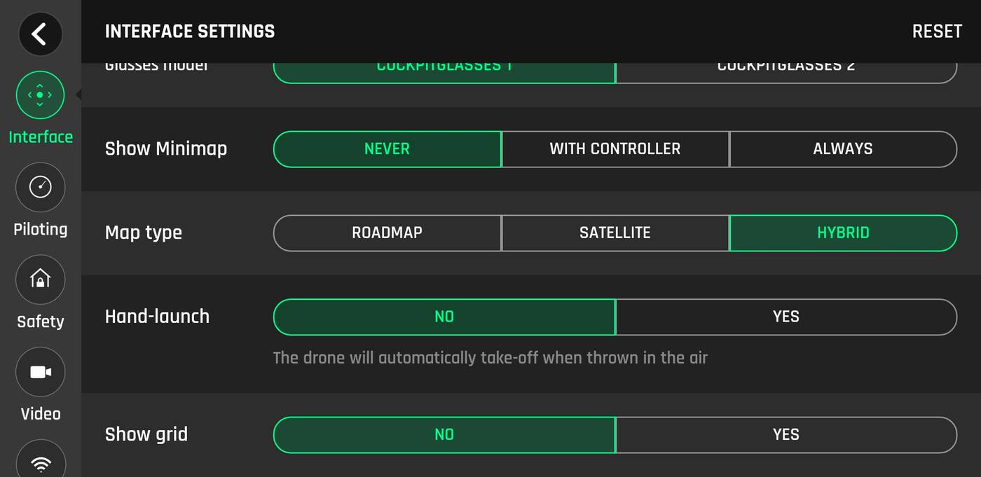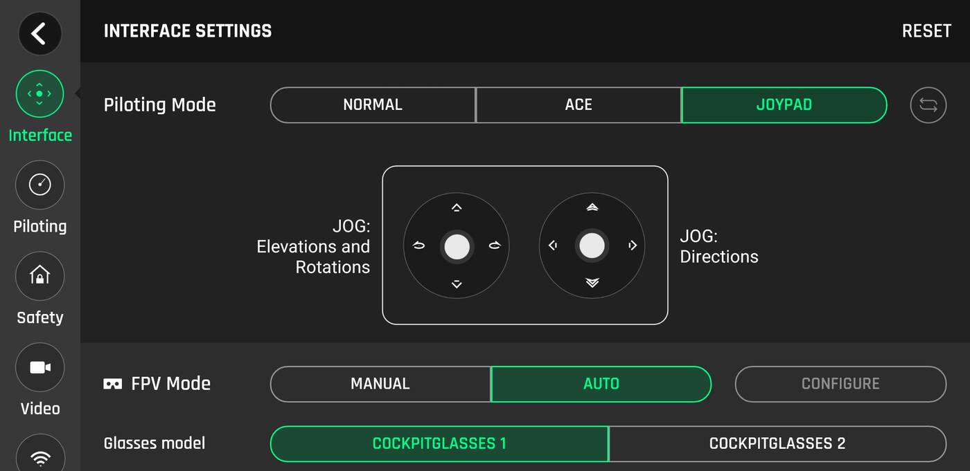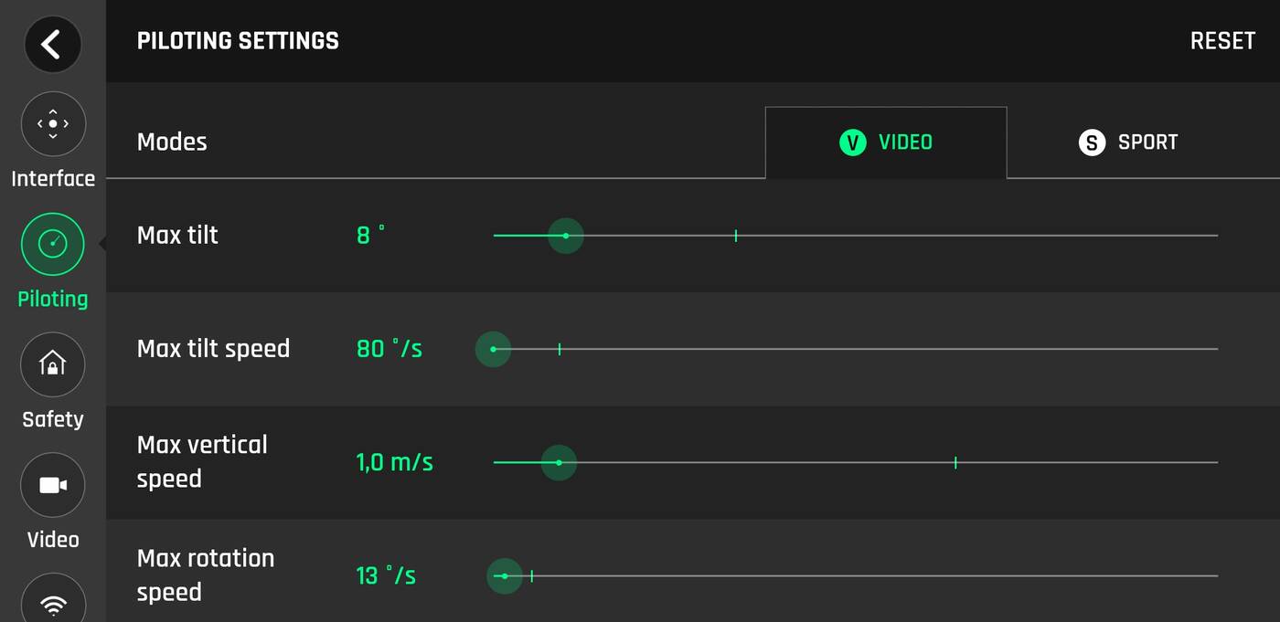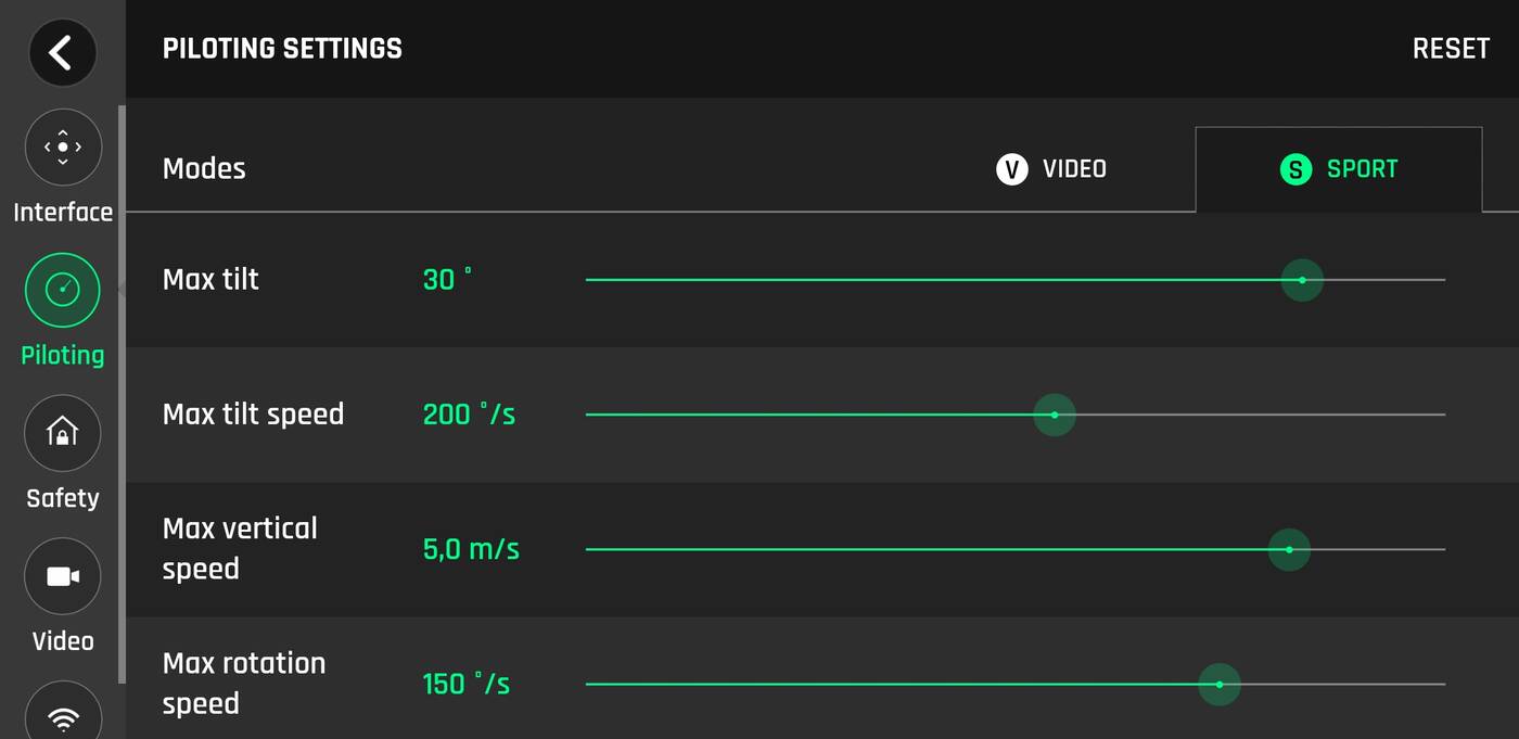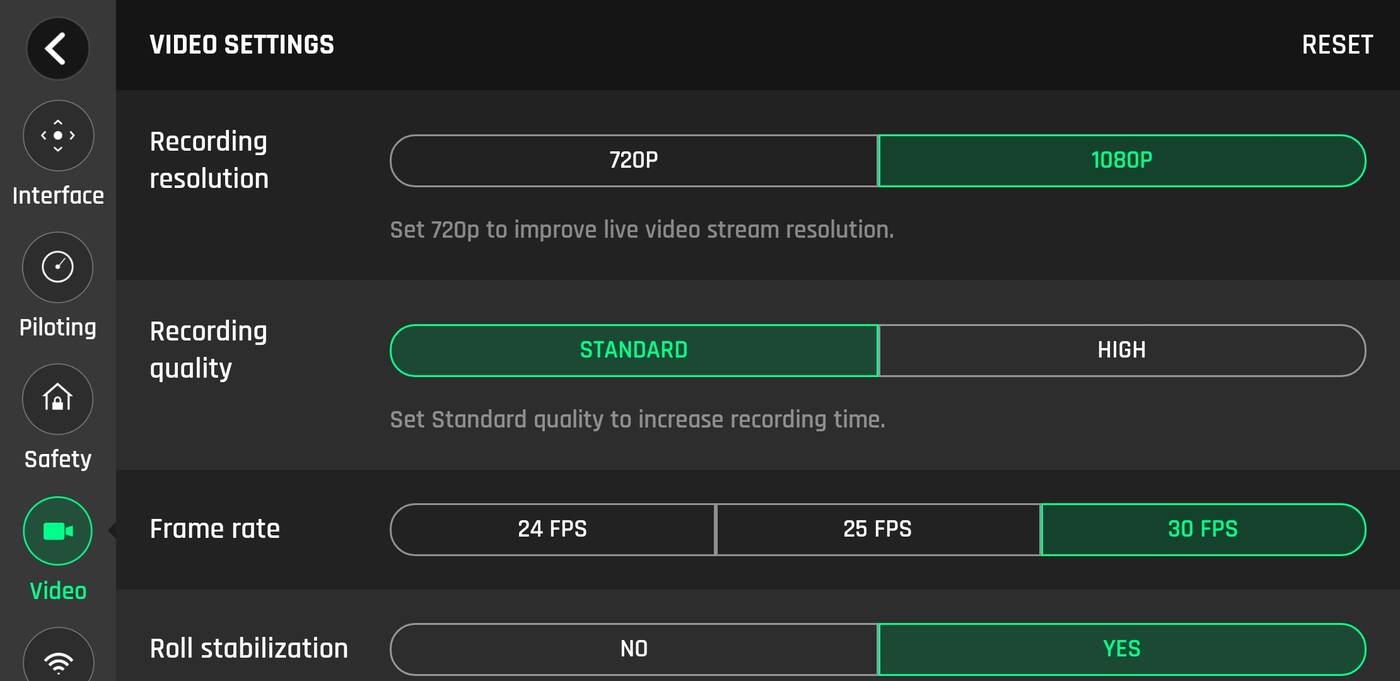 Do tego możliwość kalibracji, sprawdzenie stanu technicznego, podgląd baterii, możliwość startu z ręki, dostosowanie jakości nagrań i wreszcie łączności.