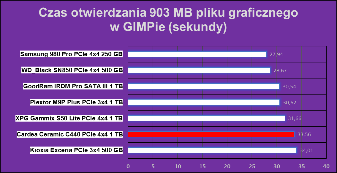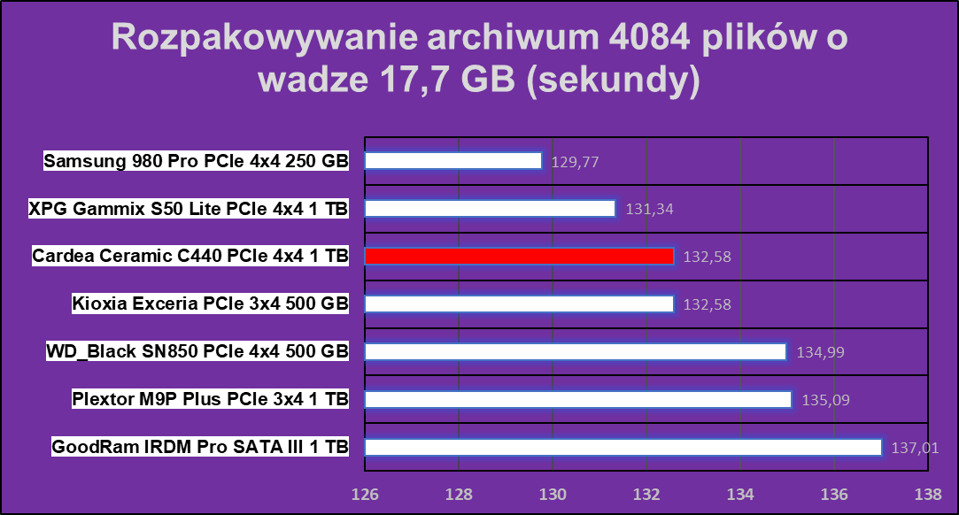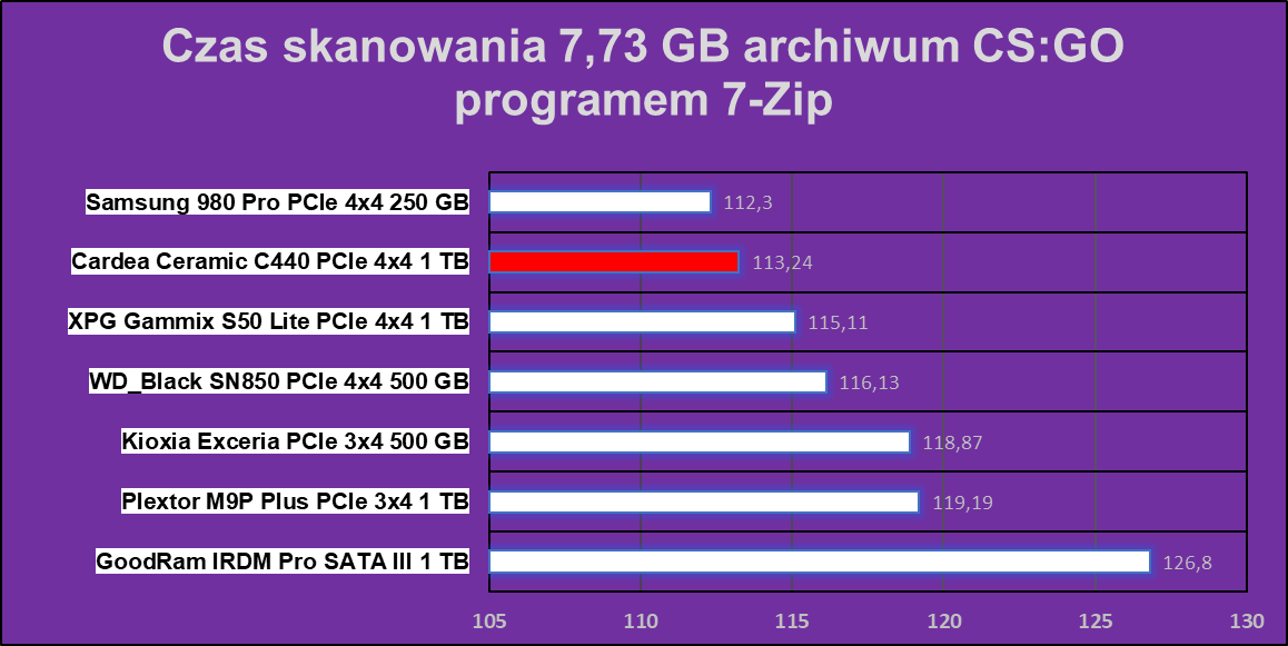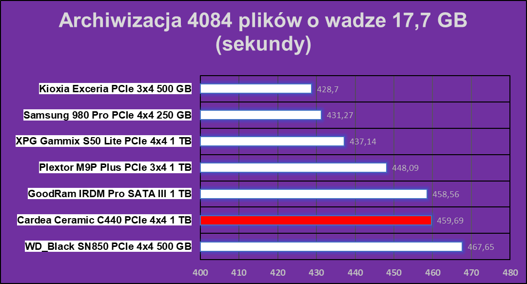 Imponujący zapis nie pomaga nośnikowi Cardea Ceramic C440 na szaleństwo w tego typu operacjach, co widać przede wszystkim w archiwizacji oraz otwieraniu pliku graficznego.