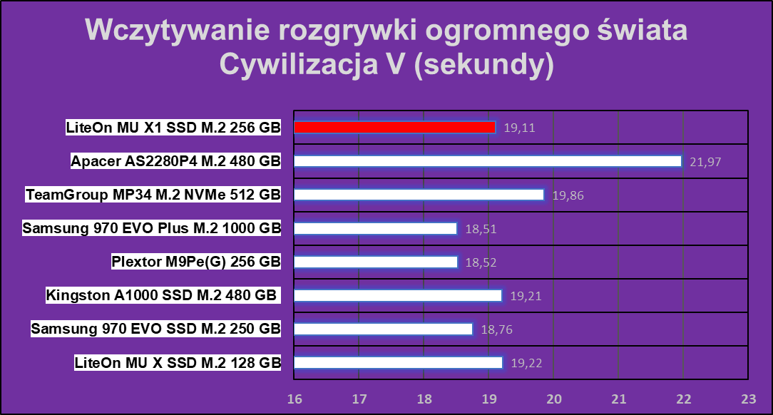 W kwestii wydajności w grach i programach jest z kolei przyzwoicie, patrząc ciągle przez pryzmat ceny. LiteOn Mu X1 nie dorasta do pięt najwydajniejszym dyskom z zestawienia, ale też nie odstaje od nich i w 4/5 przypadkach sprawdza się lepiej w porównaniu do swojego poprzednika.