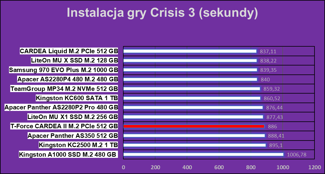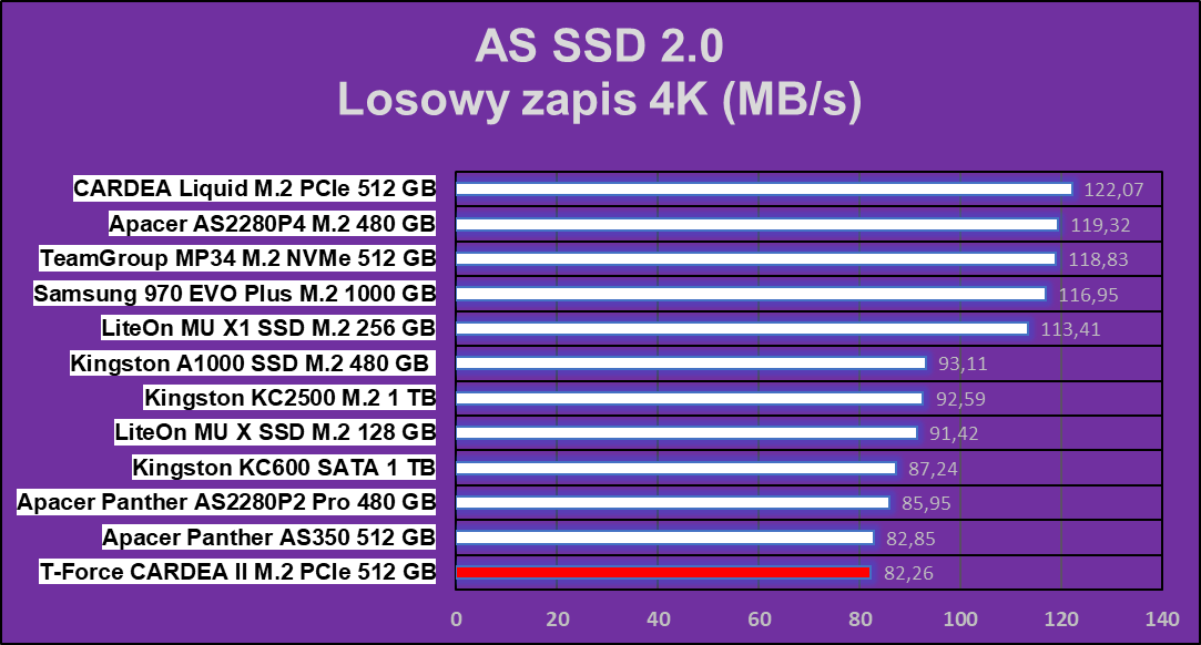 Model CARDEA II najlepiej porównać do jego chłodzonego wodą odpowiednika, czyli CARDEA Liquid przez to, że występuje w tej samej wersji pojemnościowej. Nie jest jednak jedyny w tej klasie, bo swoich trzech minut może domagać się też Apacer AS2280P4 i TeamGroup MP34.