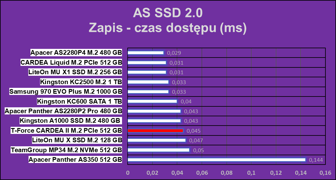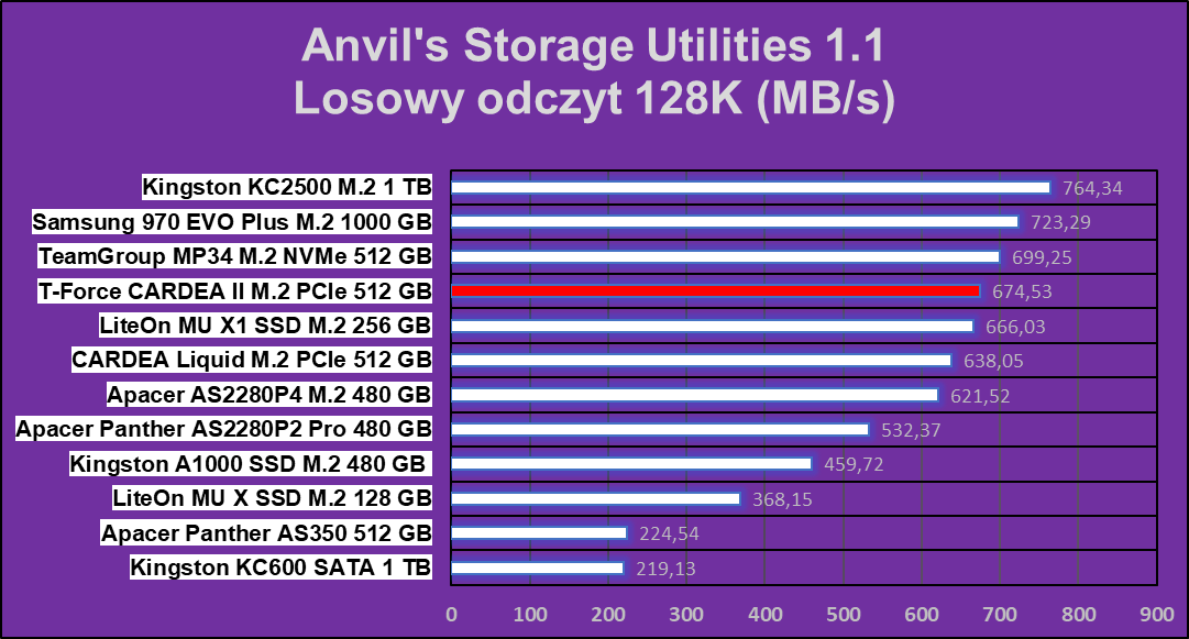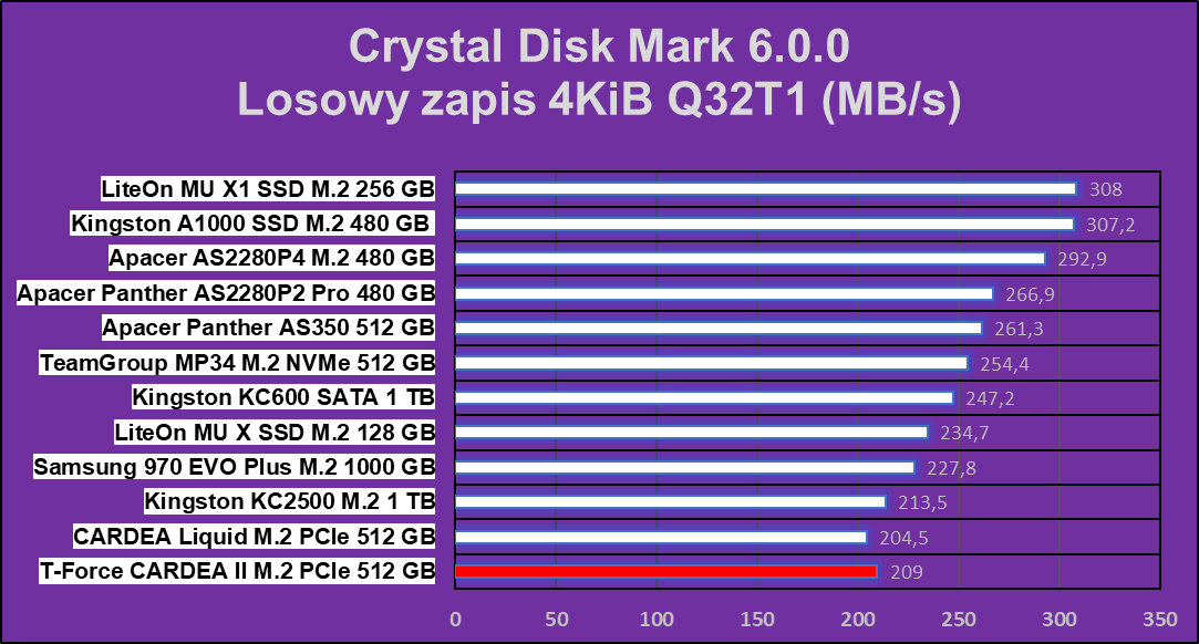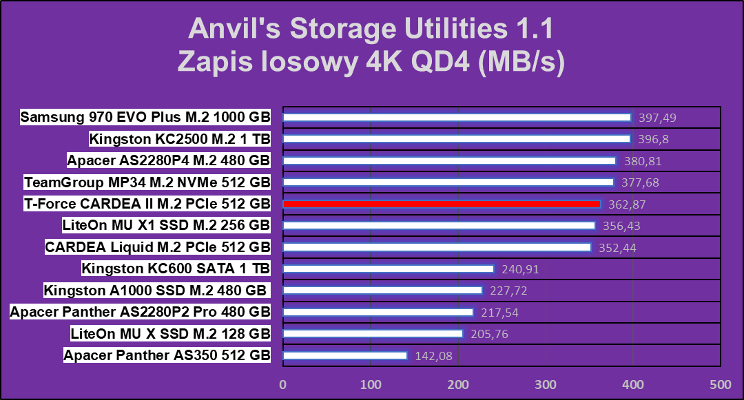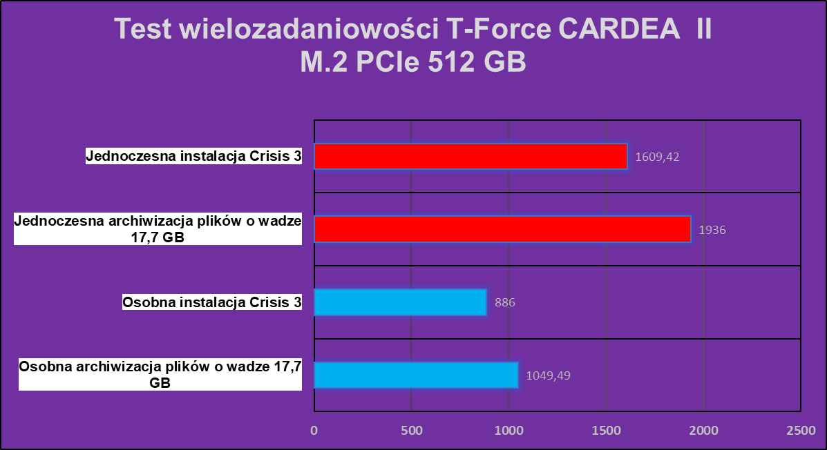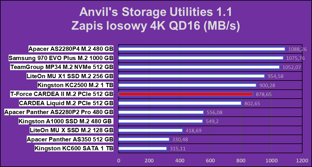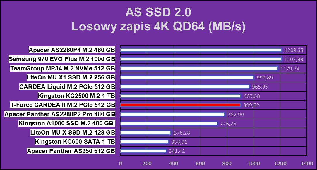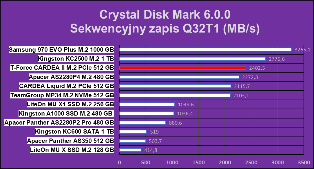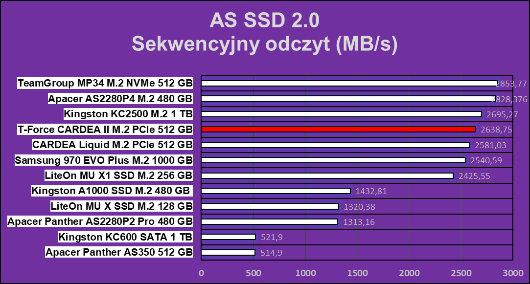 Trzy programy wykazały, że T-Force Cardea II 512 GB, to naprawdę solidny dysk, który w benchmarkach zjada nawet droższą i pojemniejszą konkurencję. Wprawdzie miał nawet trzy momenty zwątpienia, ale może być to równie dobrze jakaś anomalia. W skrócie jednak – jest nieźle.