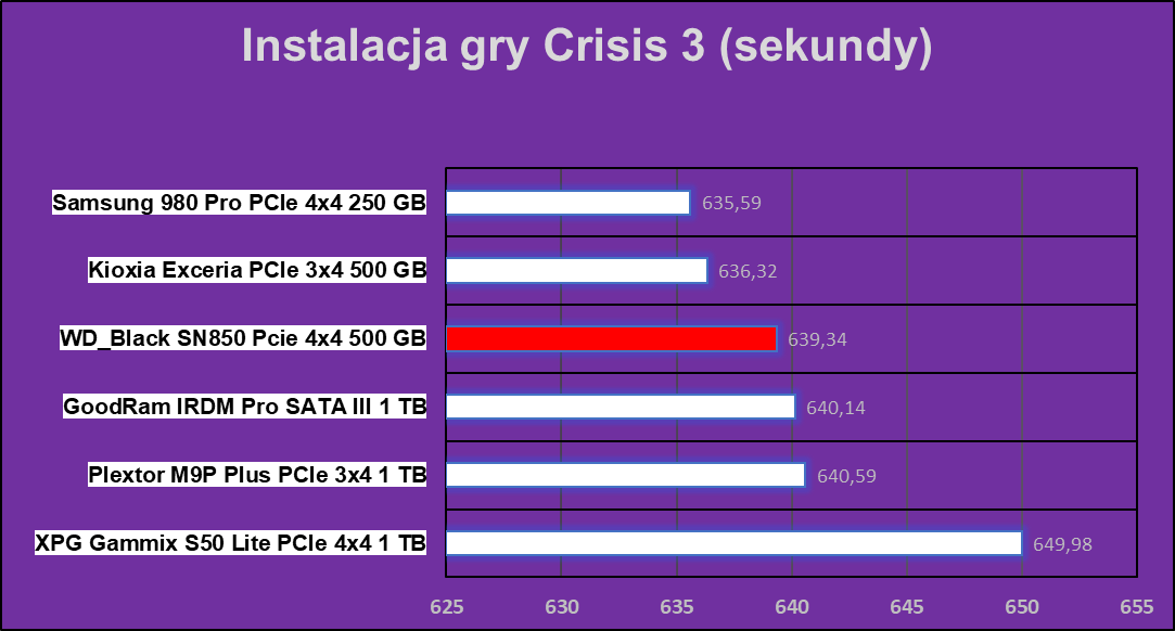 Obecnie WD Black SN850 500 GB można kupić za 600-625 złotych w zależności od wybranej wersji (z radiatorem lub bez). Jest to więc świetnie wyceniony nośnik względem konkurencji na rynku, który na dodatek przewyższa ją „na papierze”.