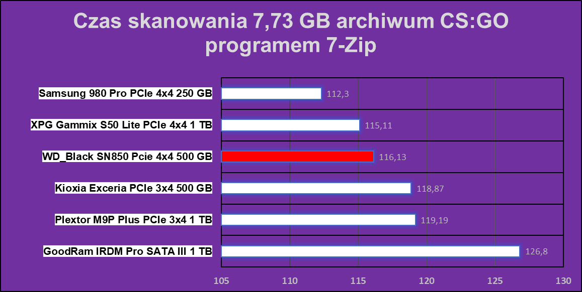 Oczekiwaliśmy więcej, a finalnie wyszło po prostu „dobrze”. Tak bowiem WD Black SN850 poradził sobie z większością stawianych mu zadań, choć przy archiwizacji kompletnie się wyłożył.