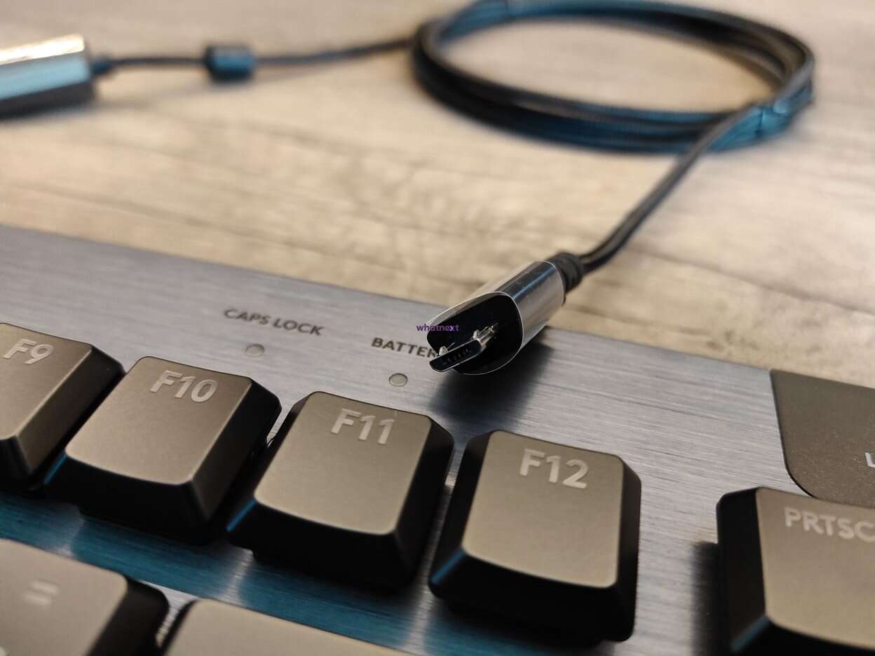 I na sam koniec trzy szczegóły, do których mogę się doczepić. Po pierwsze, połączenie elementu plastikowego z aluminiowym po obu bokach mogło zostać lepiej „wyprowadzone”, żeby spoina nie była aż tak wyczuwalna pod palcem. Po drugie… microUSB? Serio? W czasach coraz powszechniejszych przewodów USB-C? To jednak szczegóły. Szczegółem nie jest jednak brak podkładki pod nadgarstki, która zdecydowanie przydałaby się w zestawie przez samą konstrukcję tej klawiatury.