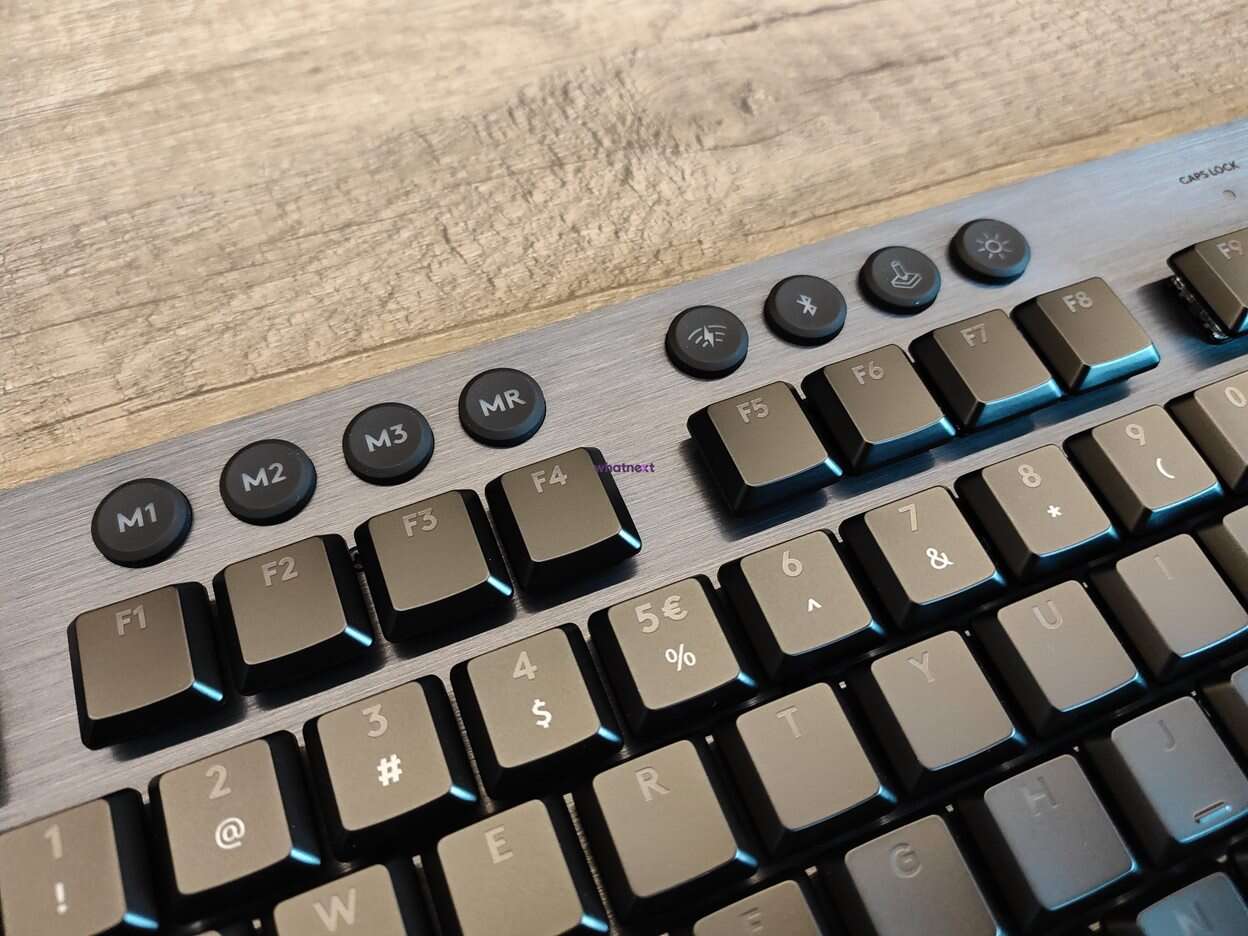 G915 wyróżnia się na tle innych modeli konkurencyjnych swoim zaawansowaniem. Oprócz tradycyjnego zestawu klawiszy Logitech postarał się o dodatek pięciu (G1-G5) z lewej strony oraz aż 12 okrągłych do zarządzania klawiaturą. Pierwsze trzy z nich (od lewej od podświetlanego logo) odpowiadają za wybór wcześniejszych przypisań do klawiszy G, a kolejny inicjuje nagrywanie makr.