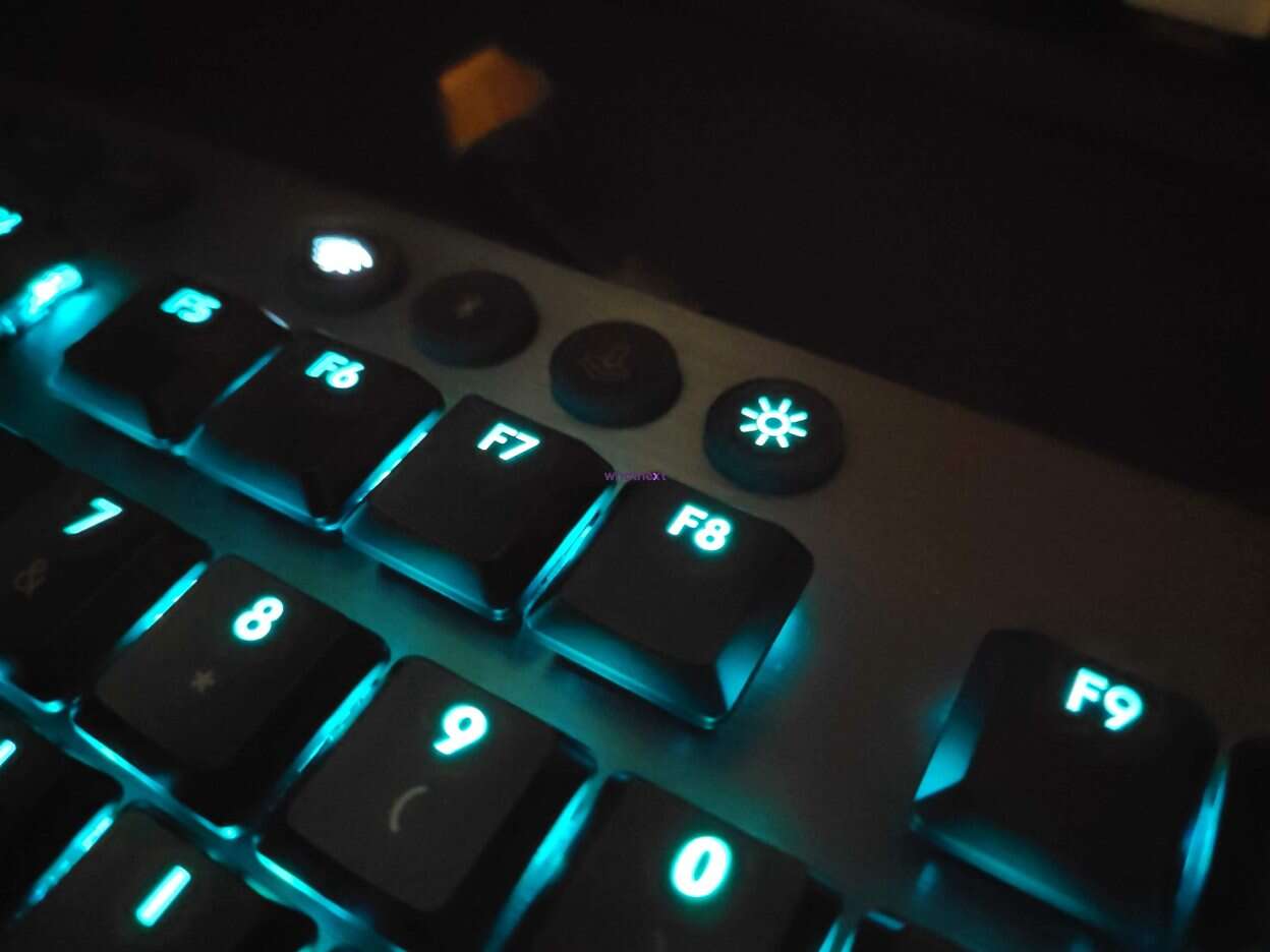 Chociaż opisywane przeze mnie dodatki mogą wydać się prozaiczne, wyjątkowe w nich jest nawet samo podświetlenie. Możemy ustawić, jaki kolor mogą przybrać klawisze G1-G5, przycisk zmiany natężenia jasności, przyciski multimedialne pod rolką… ale niestety nie dokonamy tego z M1-MR (te pozostają żółte) oraz przyciskiem trybu łączności i gamingowego (te niezmiennie świecą na biało).