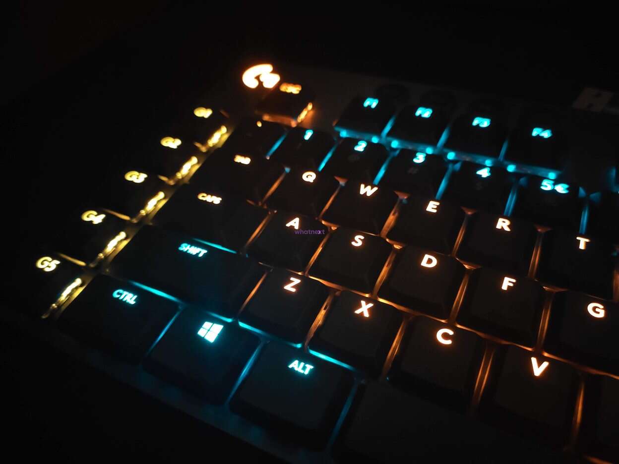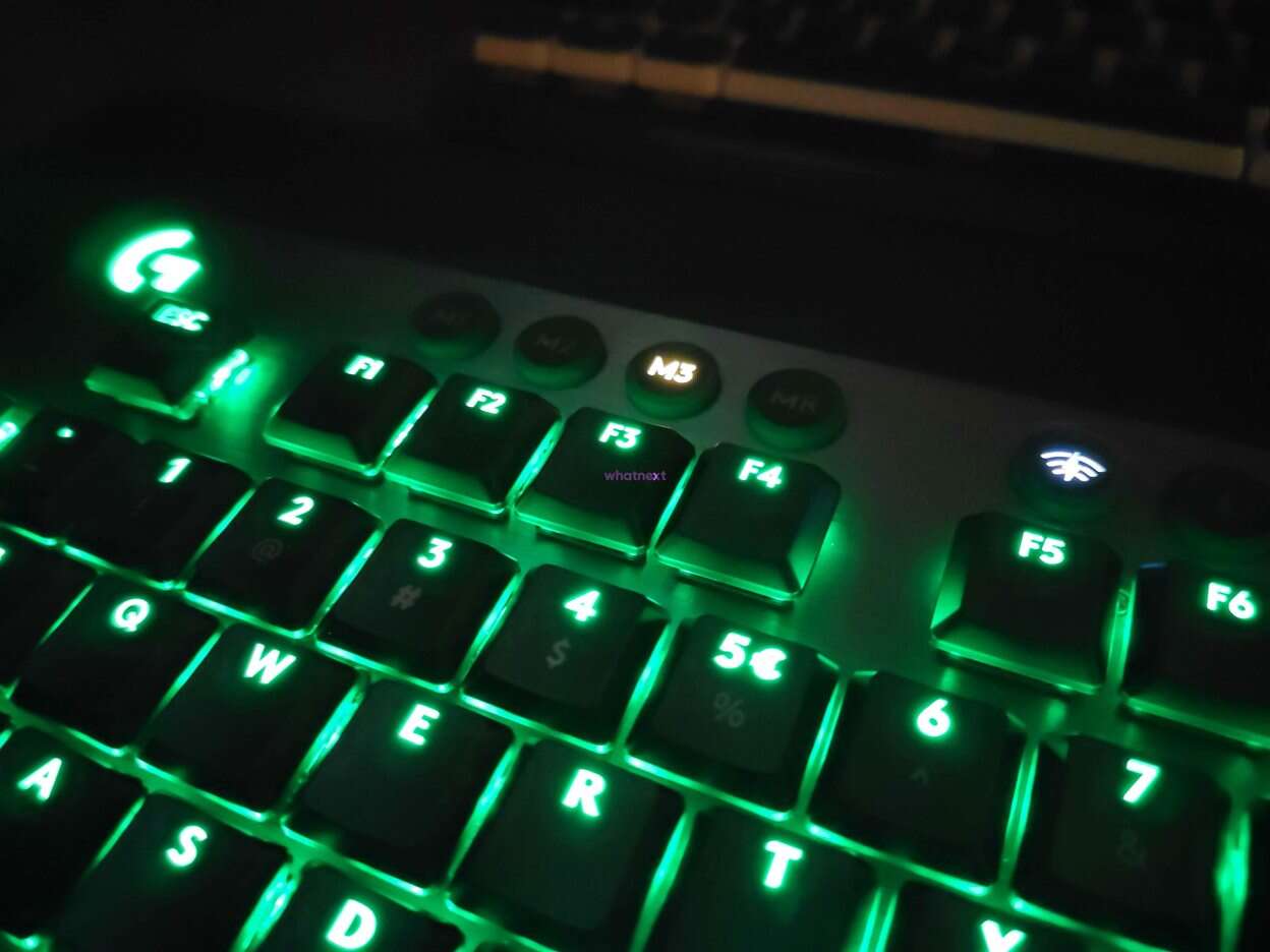 Jasne, G915 nie świeci tak jasno i tak spektakularnie, jak inne modele na rynku, ale w tym przytłumionym wydaniu naprawdę mi się podoba. Zwłaszcza przez świetnie skrojoną czcionkę, która nawet na najniższym poziomie podświetlenia jest widoczna. Całość dopinają wspomniane świetne efekty i dobre odwzorowanie barw. Na wielki plus należy zaliczyć podświetlane logo w lewym górnym rogu, jak również szereg dodatkowych przycisków.