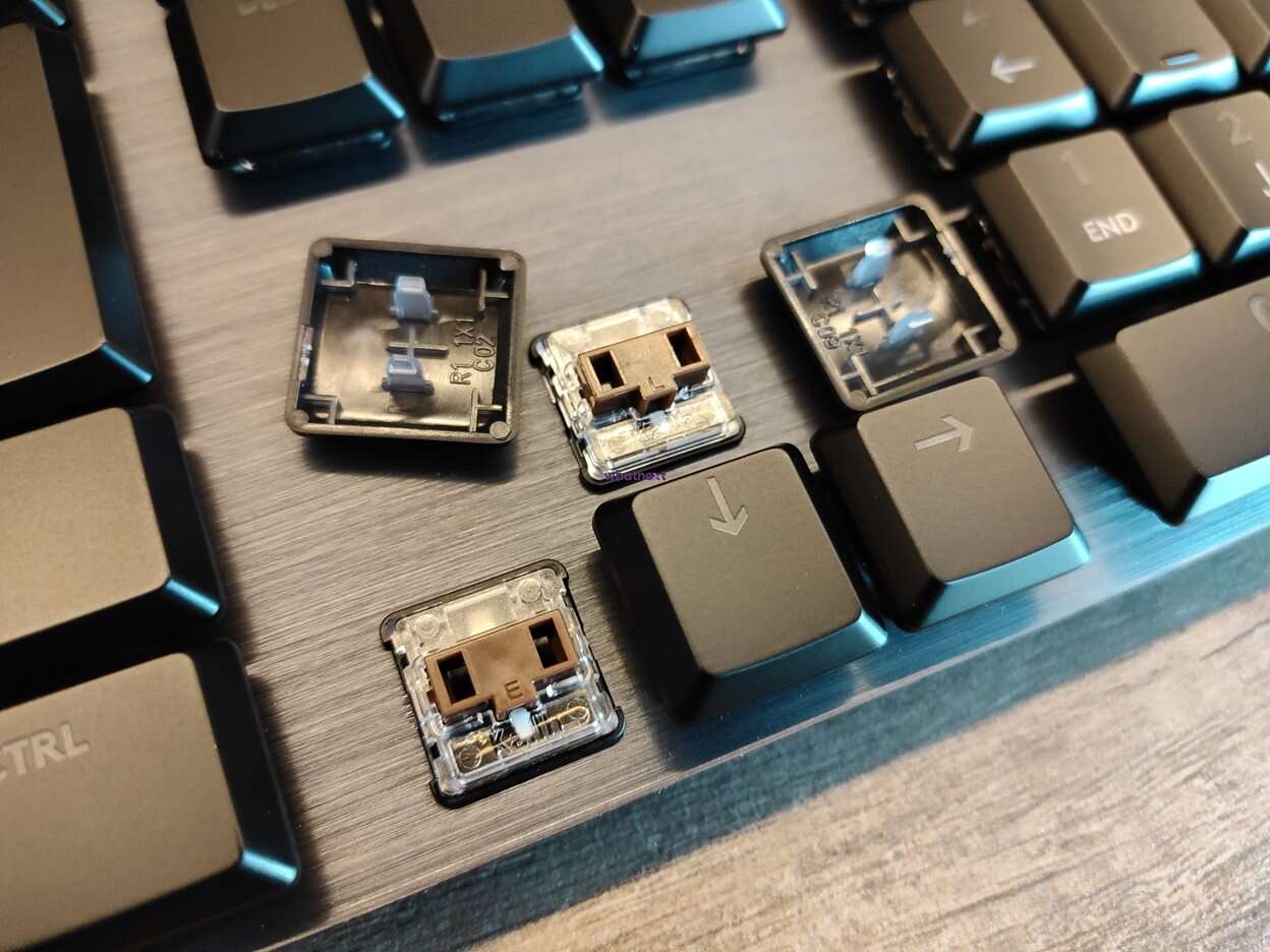 Osobiście sam korzystam zwykle z pełnowymiarowych przełączników Blue, ale przejście na G915 było kwestią kilku godzin pracy. Czy było warto? Jak dla mnie tak i to przez szybkość aktywacji oraz płynność pisania, co bezpośrednio przekłada się na szybkość w grze. Wyjątkowa w rozwiązaniu Logitecha jest zdecydowanie sama konstrukcja przełączników – te bazują nie na tradycyjnym „krzyżaczku”, a dwóch dziurkach. To w nie wpadają „wsporniki” na klawiszów, gdzie się zakleszczają.