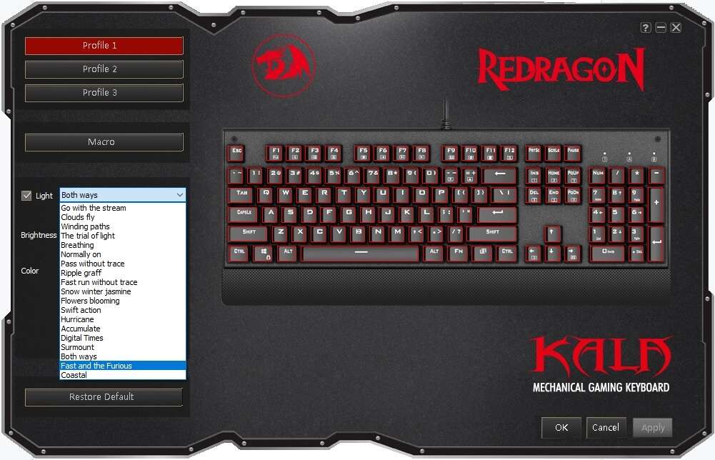 Oficjalnie to pierwszy raz, kiedy musiałem poddać się w tak prostej aplikacji. Nie wiem, czy to ze mną jest problem, czy może ktoś wpadł na świetny pomysł ukrywania opcji, ale jedyne, co można zrobić w dołączonej aplikacji, to wybrać efekt podświetlenia i kolor z zakresu RGB oraz nagrać makro. Jak je podpiąć albo jak zmienić funkcję klawisza? Mnie nie pytajcie. Tutaj poległem: