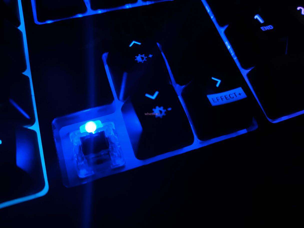 Dodatkowo możecie regulować je za sprawą strzałek pod kątem szybkości efektu i jasności diod na pięciu poziomach z czego jeden oznacza po prostu wyłączenie podświetlenia. Nie zabrakło możliwości ustawienia swojego trybu pod “trzecim profilem”, ale wyłącznie w ramach sześciu stref i ośmiu podstawowych kolorów. Całość dopełnia zestaw multimedialnych funkcji ukrytych pod klawiszami F1-F12.