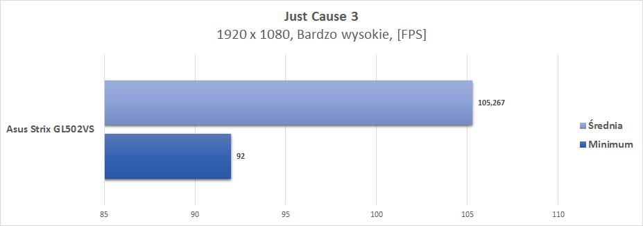 Jak sami widzicie wydajnościowo Strix GL502VS sprawuje się znakomicie. Pozwala on na spokojną grę w najwyższych detalach w większości nowych gier. 60 FPS nie udaje się uzyskać w każdej, jednakże mało do tego brakuje. Także wydajność obu dysków jest bardzo dobra. Dzięki SSD laptop uruchamia się w mgnieniu oka, a wszystkie aplikacje na nim zainstalowane chodzą zauważalnie szybciej.