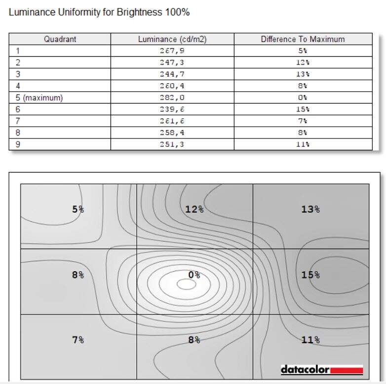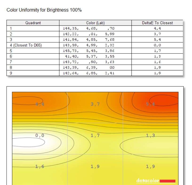Matryca nie jest zbyt mocnym punktem FX505DY. Odwzorowanie kolorów sRGB to zaledwie 68% – bardzo słaby wynik jak na IPS. Gamma wynosi 2,1, czyli jest raczej dobrze. Kontrast to ok. 680:1 a punkt bieli wynosi 7200K. Ten drugi powinien być bliżej ideału, za to kontrast oceniam pozytywnie. Niejednorodność kolorów jest dobra – maksymalna różnica to 5,4% więc nie jest źle. Gorzej jest z niejednorodnością podświetlenia – 15% to spora różnica. Odwzorowanie kolorów jest dobre – dwa ze sprawdzanych mają DeltaE=7, czyli dosyć spore, pozostałe są idealne. Ogólnie jest to dobra matryca, choć nie zachwyca. W szczególności odwzorowanie kolorów jest słabe czy niejednorodność podświetlenia powinna być lepsza.