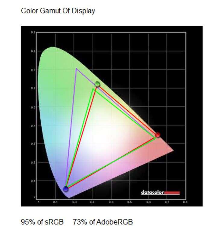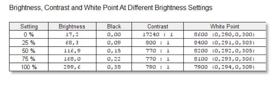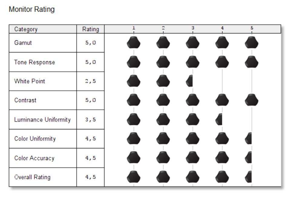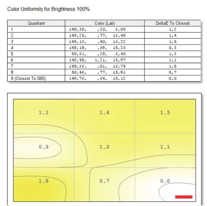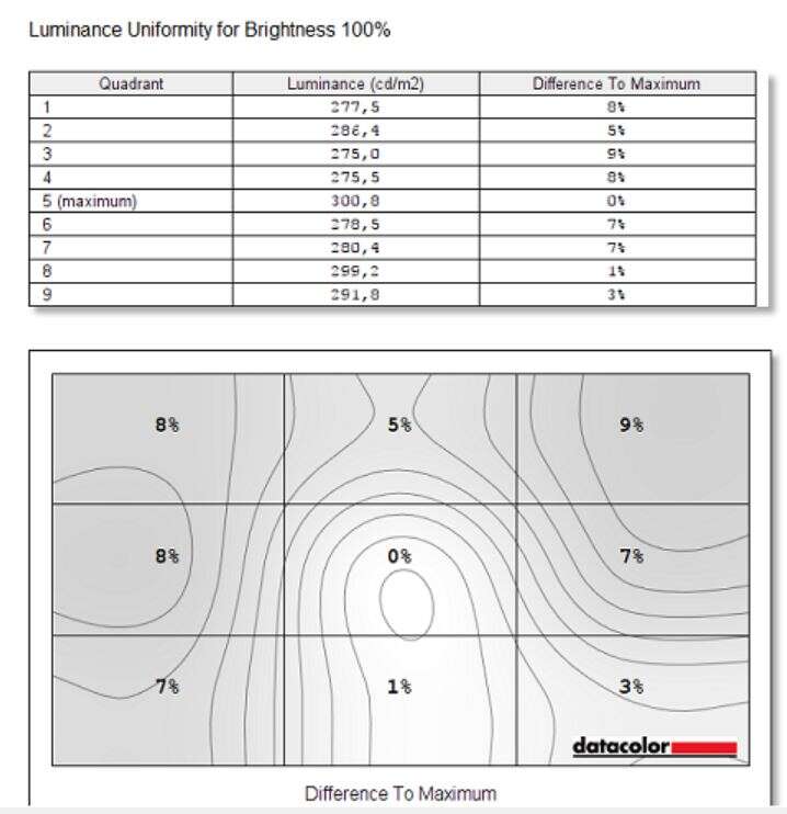 Matryca jest bardzo dobrej jakości. Gamma jest idealna, czyli wynosi 2,2. Pokrycie kolorów sRGB to 95%, czyli o 5 punktów procentowych mniej niż deklaruje producent, ale i tak jest bardzo dobrze. Pokrycie AdobeRGB to 73%. Zmierzony kontrast wynosi 790:1. Minusem jest daleki od ideału punkt bieli, który wynosi 7900K. Niejednorodność kolorów jest naprawdę świetna – są tylko małe różnice. Niejednorodność podświetlenia jest również dobra, choć 9% różnicy może czasami przeszkadzać. Maksymalna zmierzona jasność to 300,8 cd/m^2 co jest dobrym wynikiem. Odwzorowanie kolorów jest również bez zarzutów. Matryca jest z pewnością bardzo dobra, choć wypadałoby poprawić punkt bieli i trochę popracować nad niejednorodnością podświetlenia.