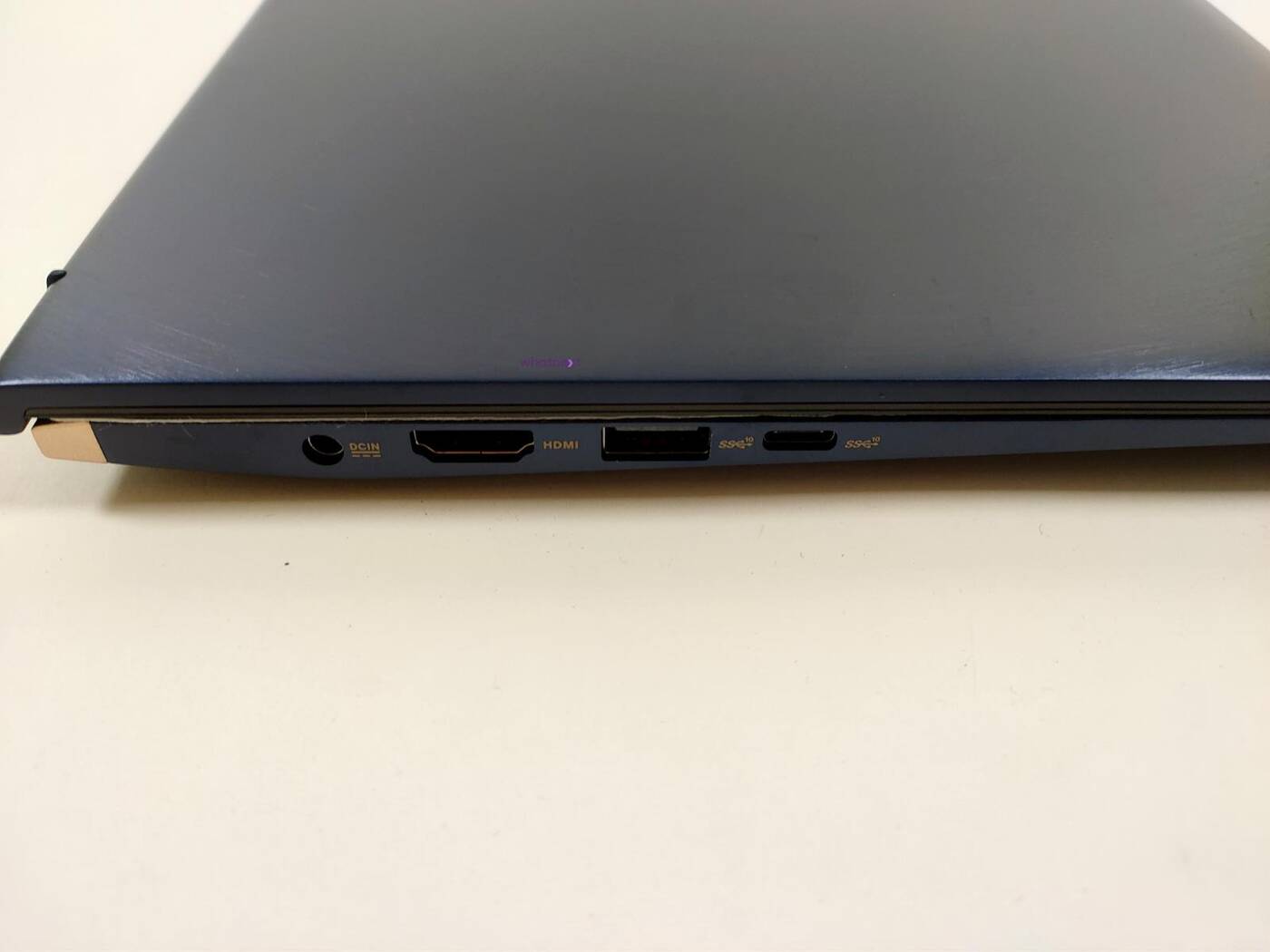 Z lewej strony mamy do dyspozycji złącze zasilające (szkoda, że nie jest to USB-C), HDMI, USB 3.1 Gen2 i USB-C 3.1 Gen 2. Z prawej strony jest czytnik kart microSD, złącze USB 2.0 oraz wejście audio. Szkoda, że wejście z prawej strony nie jest także USB 3.1 Gen2. Brakuje mi też jeszcze choćby jednego złącza USB. Pamiętajcie, że w zestawie macie przejściówkę USB na Ethernet. Gdy podłączycie myszkę i przejściówkę to w zasadzie pozostaje Wam wolne złącze USB-C. Rozwiązaniem tego problemu jest zakupienie odpowiedniego hubu. Także niestety, ASUS ZenBook 14 UX434F nie oferuje wyjścia Thunderbolt. Plusem jest za to czytnik kart oraz pełnoprawne wyjście HDMI.
