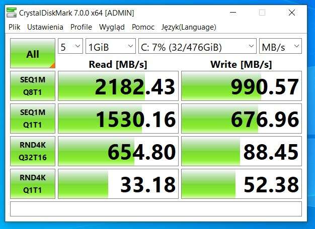 Dysk z pewnością oferuje znakomitą wydajność. Dzięki niemu system uruchamia się szybko a gry szybko się ładują. Z pewnością jest on zaletą testowanej konstrukcji. Testy karty graficznej pokazują wydajność podobną do komputerowego odpowiednika GTX 1650 – nie będzie więc zaskoczenia. Procesor również wypada nienajlepiej – zobaczymy w grach czy potwierdzi się jego raczej słaba wydajność. Odnośnie WiFI nie mam żadnego zarzutu.