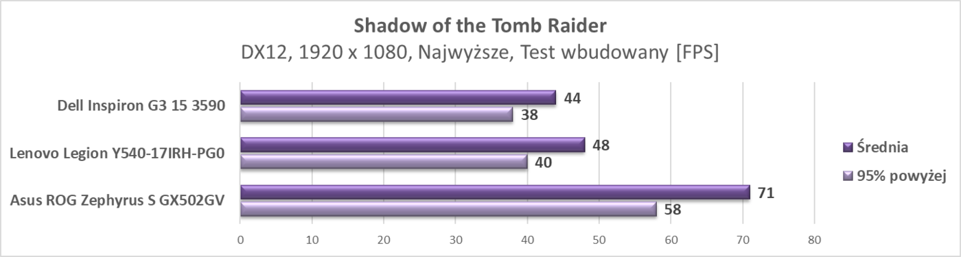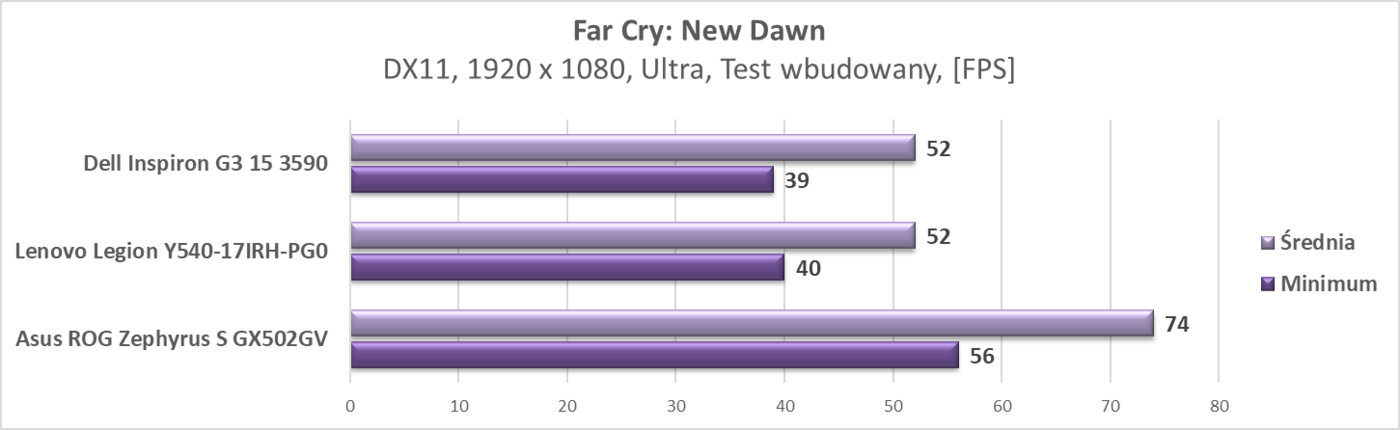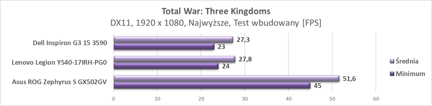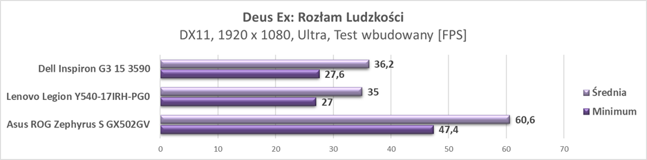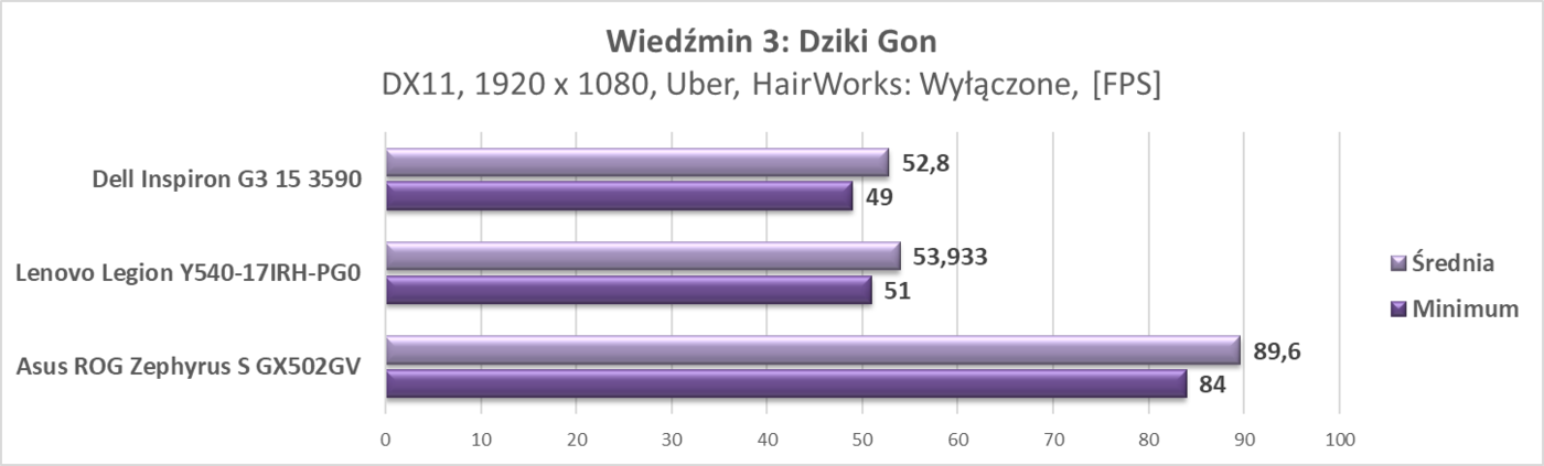 W grach niestety nie ma zaskoczenia. Laptop wypada minimalnie słabiej od bardzo podobnej konstrukcji od Lenovo. Oznacza to, że na grę w rozdzielczości Full HD przy maksymalnych detalach nie macie co liczyć, zazwyczaj uzyskacie wtedy średnią poniżej 30 FPS-ów. Jednakże wystarczy je obniżyć, aby cieszyć się praktycznie każdym nowym tytułem.