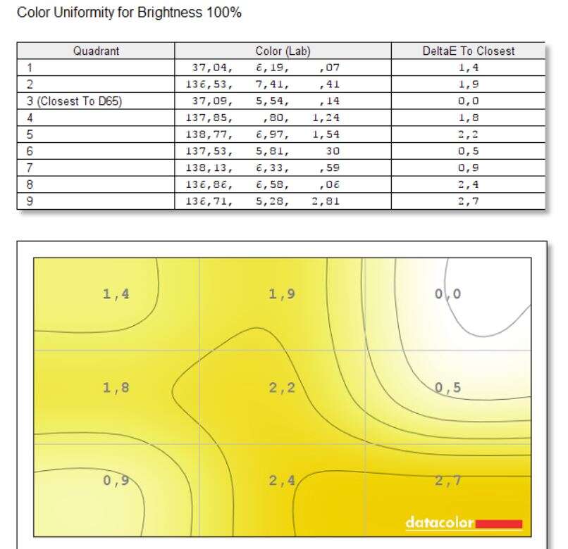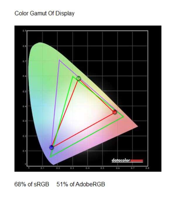 Niestety matryca to ogromny minus testowanej konstrukcji. Pokrycie kolorów sRGB to zaledwie 68% a AdobeRGB to 51%. Nieciekawie wypada gamma – 2,8 to najgorszy wynik, jaki widziałem na oczy. Sprawdziłem to dwa razy i za każdym razem otrzymałem taki sam rezultat.