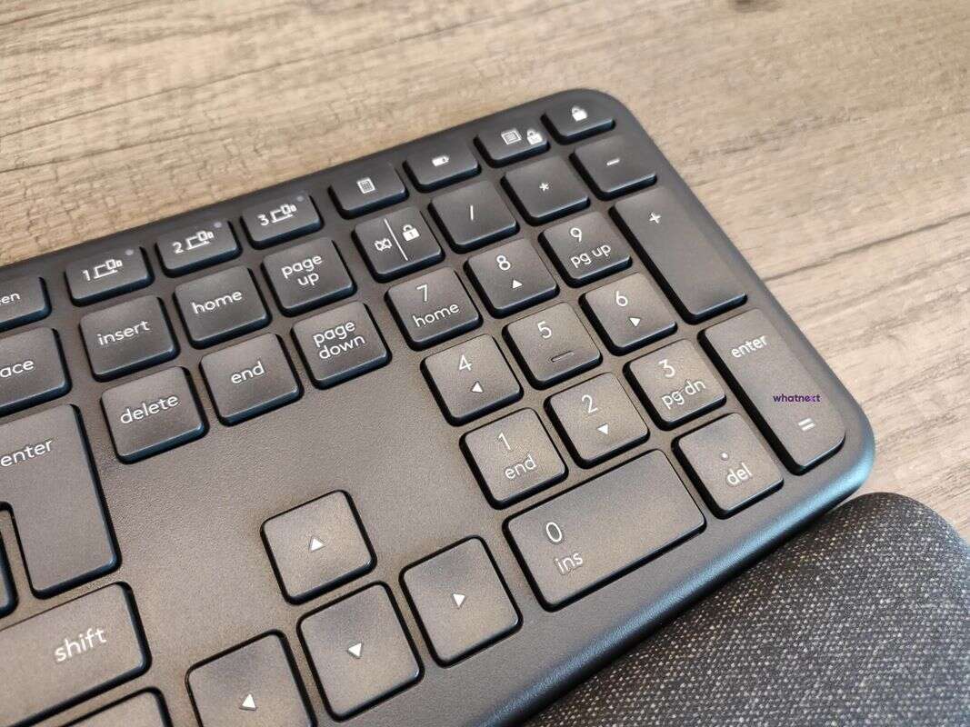 Po przyzwyczajeniu się do nietypowych kształtów i rozstawu płaskich klawiszy o delikatnych żłobieniach „w dolinki”, na Ergo K860 zacząłem pisać tak sprawnie, jak wcześniej, doceniając nawet bardziej brak hałaśliwych przełączników. Chociaż osobiście nigdy nie dręczyły mnie bóle nadgarstków, czy rąk podczas pracy, muszę też docenić jej aspekt ergonomiczny, bo po zaznajomieniu się z nietypowym kształtem, na K860 zwyczajnie przyjemnie się pisze. Jednak kiedy macie na nadgarstku zegarek, to ta wielka i szalenie przydatna i komfortowa podstawka nieco się z nim gryzie.
