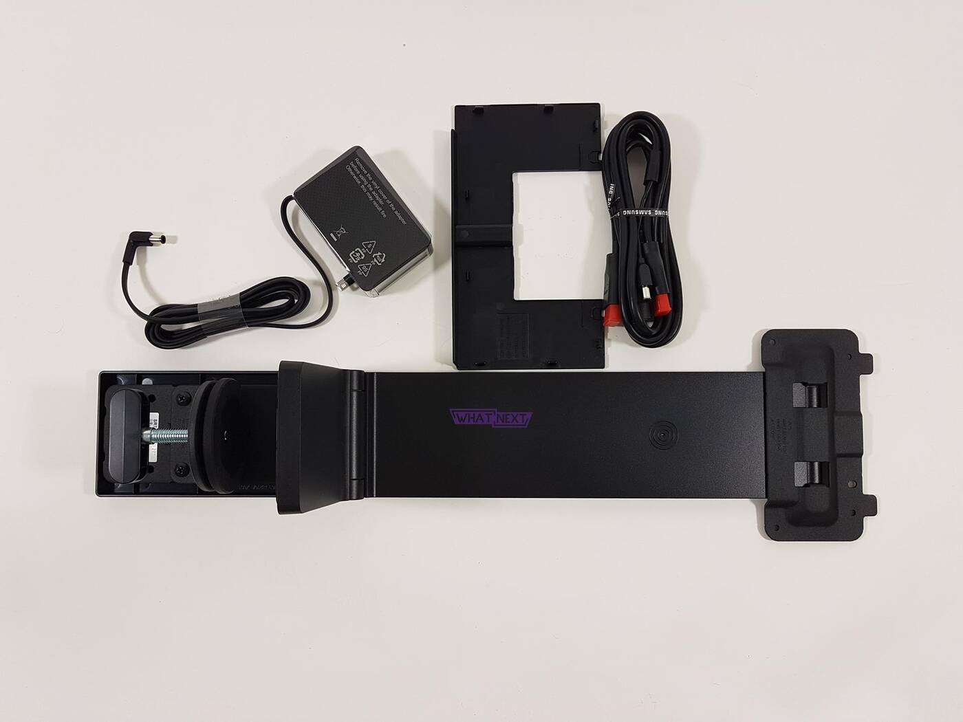 Samsung Space Monitor 27 stoi na nóżce, którą należy przykręcić do biurka. Nie ma możliwości jego tradycyjnego postawienia co może się nie spodobać wielu klientom. Nóżka jest z tyłu w pełni płaska więc monitor może przylegać do ściany. Można go tez przechylać do siebie czy do góry i to koniec możliwości. A gdzie opcja obracania czy zmiany położenia w pionie? Brak tego jest także ogromnym minusem i uważam, że lepszym rozwiązaniem byłoby zastosowanie tradycyjnej nóżki albo chociaż danie wybory klientom co chcą. Producent nie wspomina nic o VESA więc jesteście ograniczeni do dołączonej nóżki. Według mnie jest to bardzo poważna wada tego rozwiązania i bardzo ogranicza zastosowania monitora.
