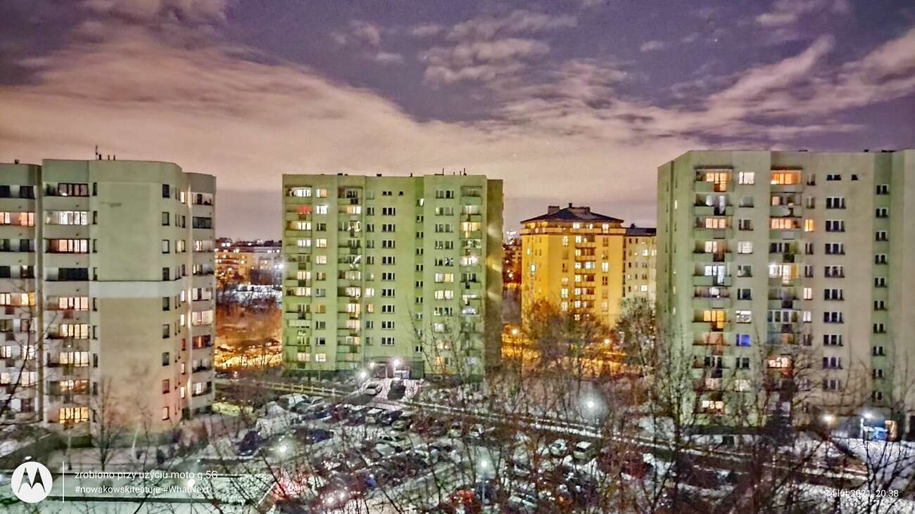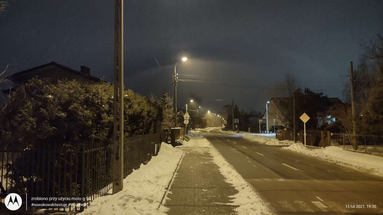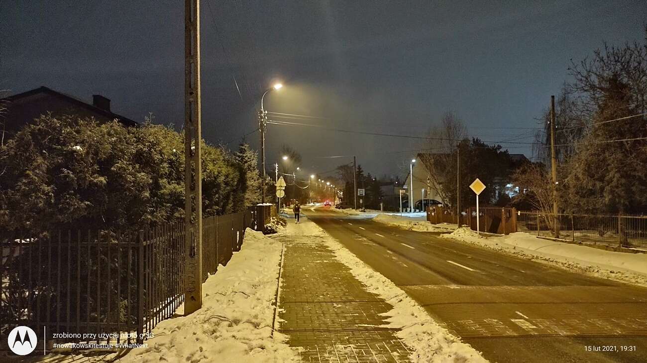 Po zmroku jest już zauważalnie gorzej – zarówno pod kątem szczegółowości, jak i ilości szumów. W tym przypadku pomaga jednak bardzo tryb nocny, który nie tylko rozjaśnia zdjęcie, uwypuklając szumy, ale też wydobywa detale z cieni. Niemniej z trybu nocnego nie możemy korzystać w przypadku obiektywu szerokokątnego, co znacznie zawęża jego zastosowanie w nocnych sceneriach.