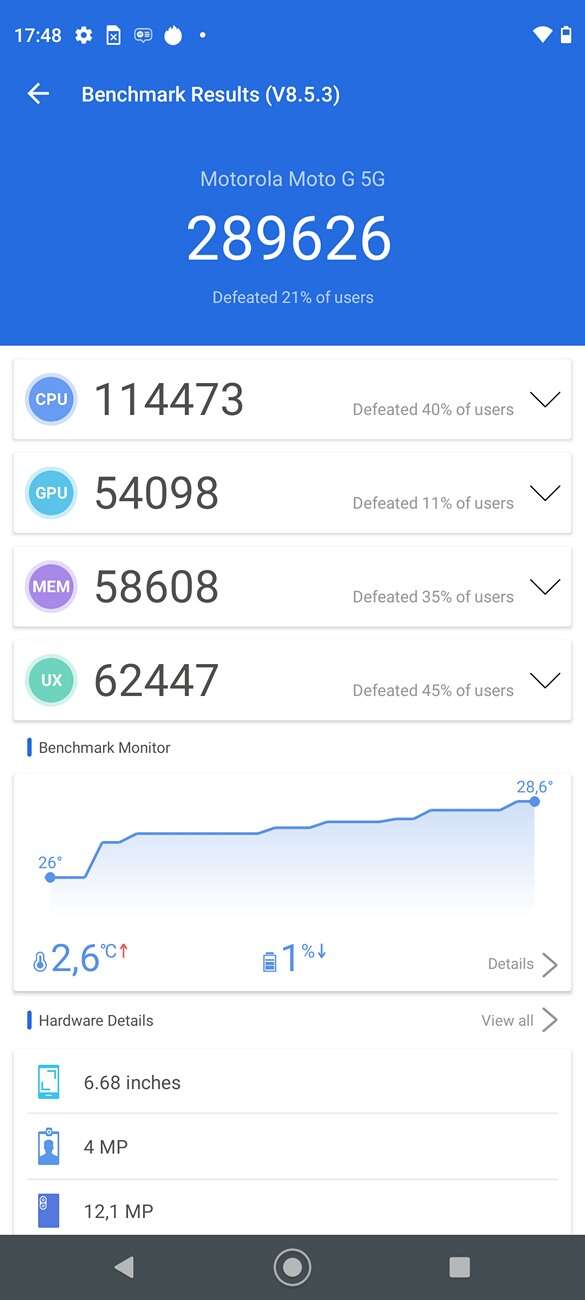 - Antutu Benchmark 8.5.3 – 289 626 pkt