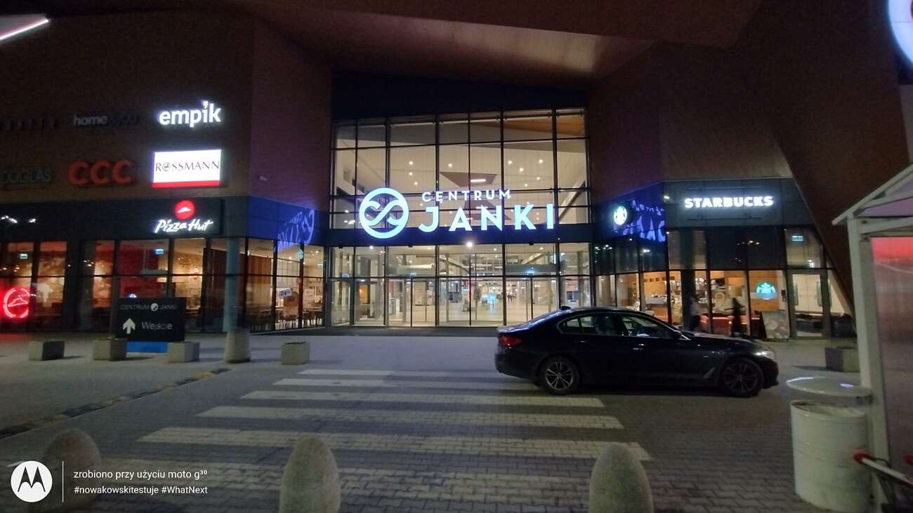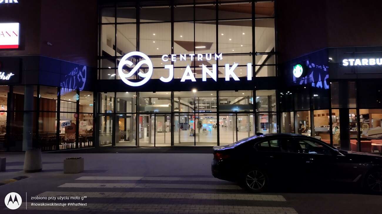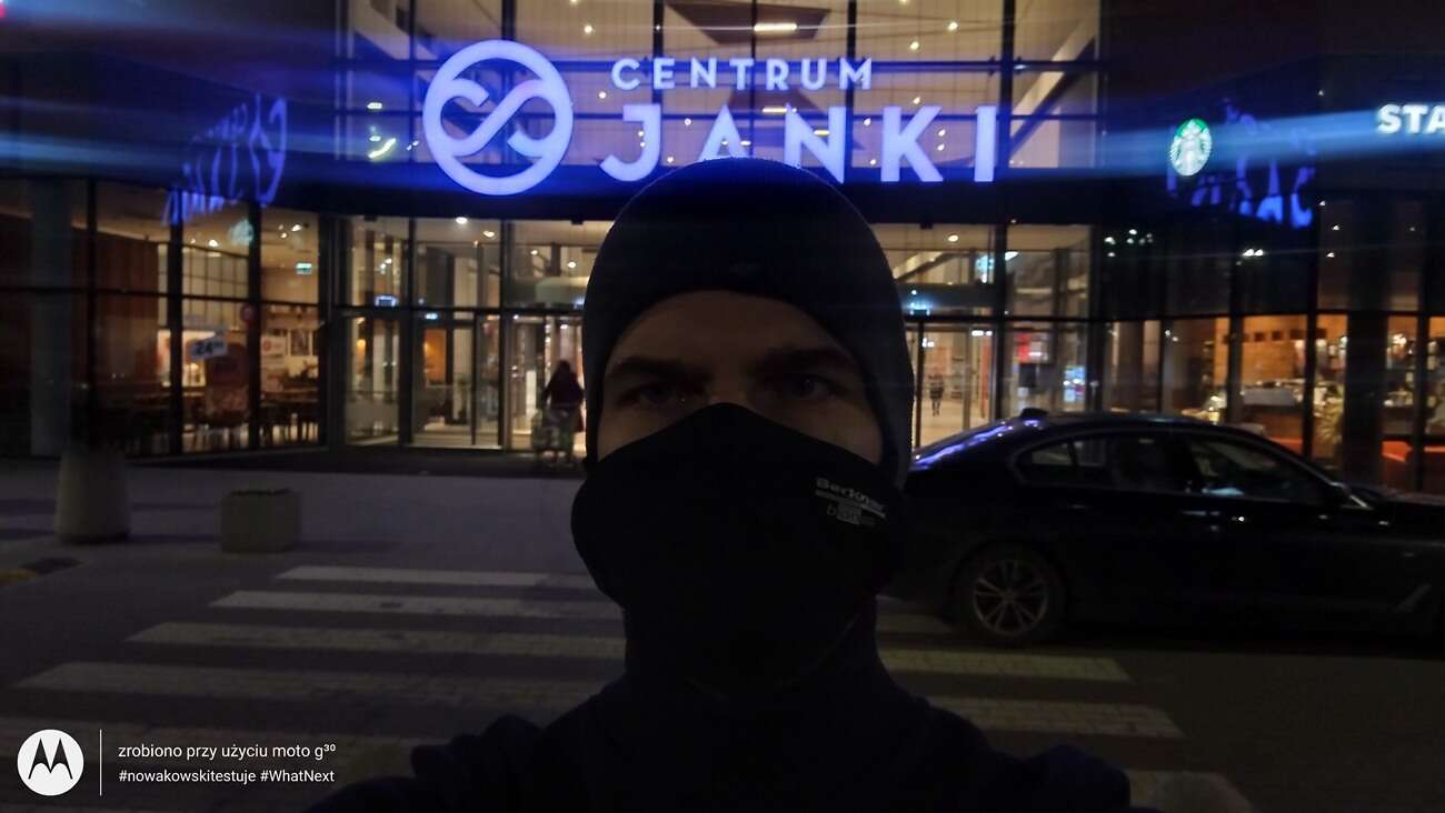 Po zmroku jest już ZDECYDOWANIE gorzej – zarówno pod kątem szczegółowości, jak i ilości szumów. Balans bieli również szaleje, a aplikacja potrafi złapać denerwującego laga po wciśnięciu przycisku spustu migawki. Tryb nocny nie bardzo tu pomaga, jedynie nienaturalnie rozjaśnia kadr. W dodatku nie możemy z niego korzystać w przypadku obiektywu szerokokątnego, co znacznie zawęża jego zastosowanie w nocnych sceneriach.