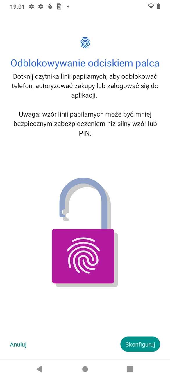 Jeśli chodzi o zabezpieczenia to mamy tu do czynienia z klasyką, czyli czytnikiem linii papilarnych z tyłu urządzenia, oraz skanerem twarzy z przodu. Czytnik linii papilarnych jest bardzo celny i względnie szybki. Natomiast skaner twarzy jest powolny i bardzo niedokładny. Trzeba się nagimnastykować, żeby odblokować telefon. Nie polecam.