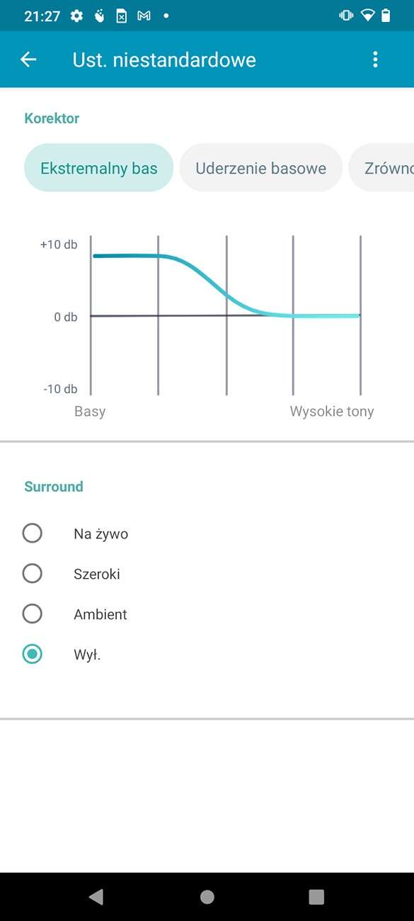 W ustawieniach znajdziemy predefiniowane style barwy dźwięku. Do naszej dyspozycji jest również radio FM z możliwością nagrywania audycji
