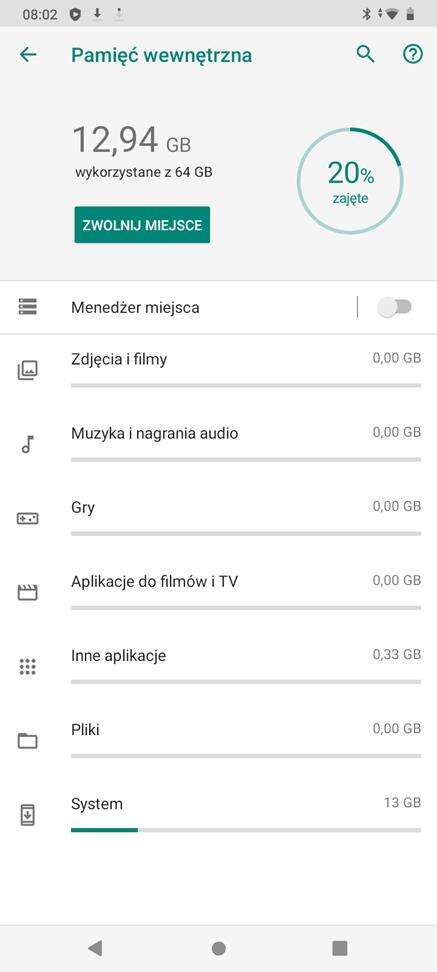 Wiemy już, że miało to miejsce w przypadku wykonania oraz aparatów, ale niestety na tym się nie kończy, co potwierdza ogólne działanie smartfona. Napędzają go 4 GB pamięci RAM, 12nm układ Mediatek MT6765 Helios P35 z ośmioma rdzeniami Cortex A53 i procesorem graficznym PowerVR GE8320. Mówi Wam to coś? Jeśli nie, to z tych najważniejszych kwestii warto wspomnieć jeszcze o 64 GB pamięci wewnętrznej (około 15 GB jest już wykorzystanych) z możliwością rozszerzenia o 256 GB za sprawą karty microSD.