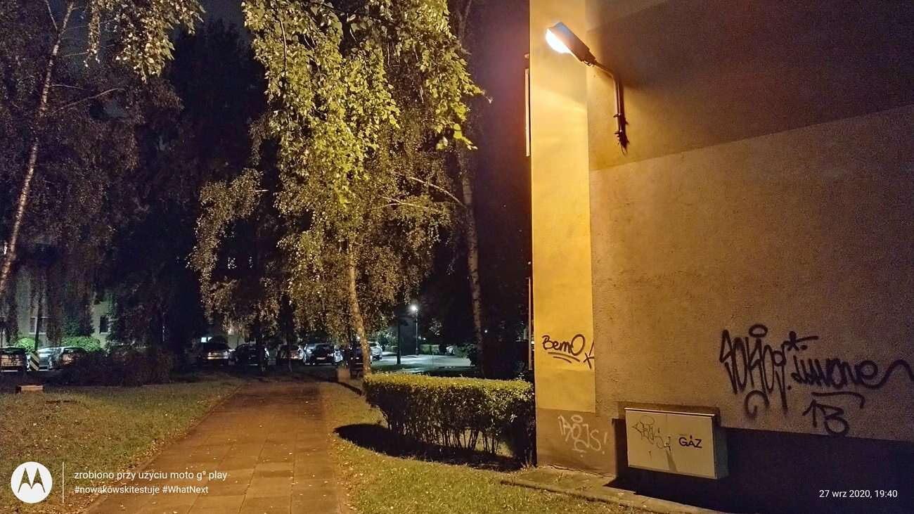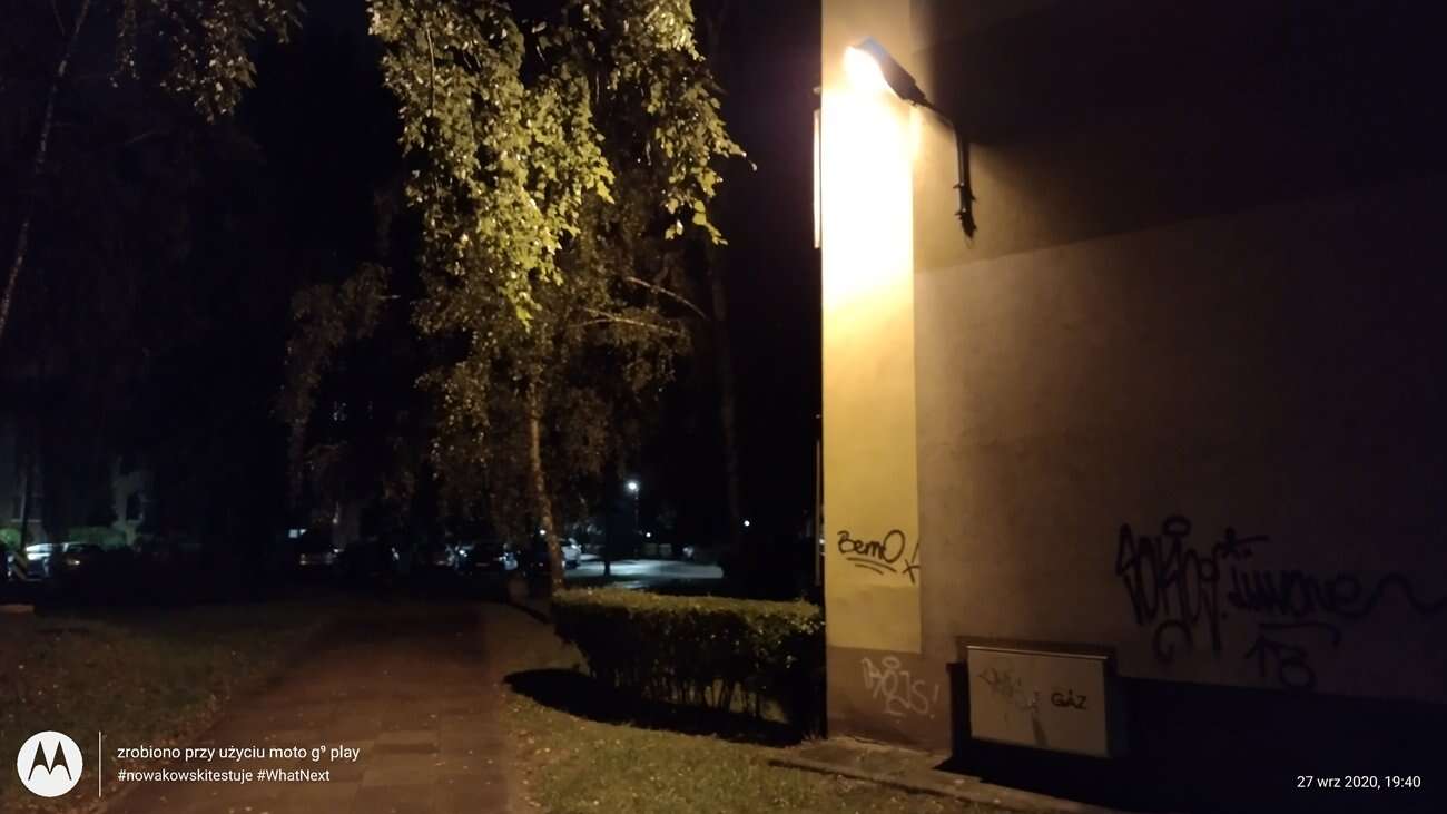 Zdjęcia nocne w trybie automatycznym wychodzą bardzo słabo. Mają dużo szumów, mało detali i bardzo łatwo i rozmazaną fotografię. Sytuację częściowo ratuje tryb nocny, który wydobywa dużo szczegółów i doświetla ujęcia. Niestety, czasami również je lekko prześwietla i zbytnio podbija barwy. No, ale mówimy tu o telefonie za 799 zł.