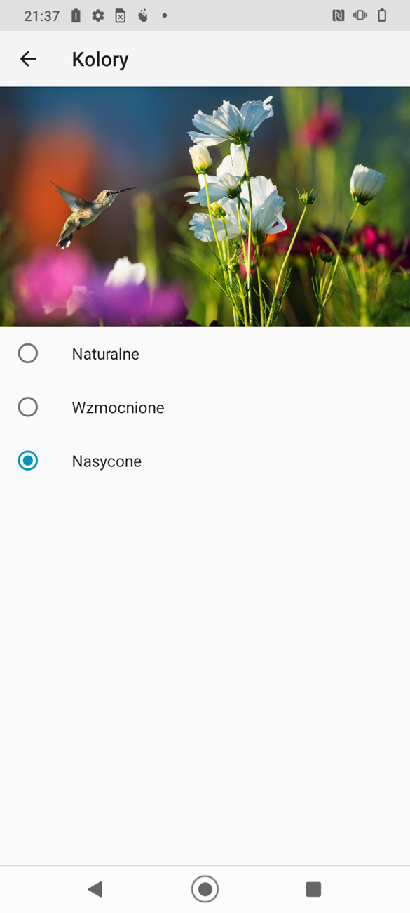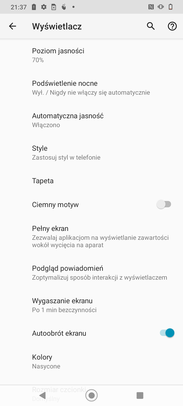 W ustawieniach znajdziemy filtr światła niebieskiego, możliwość korekcji nasycenia barw oraz tryb ciemny dla menu.