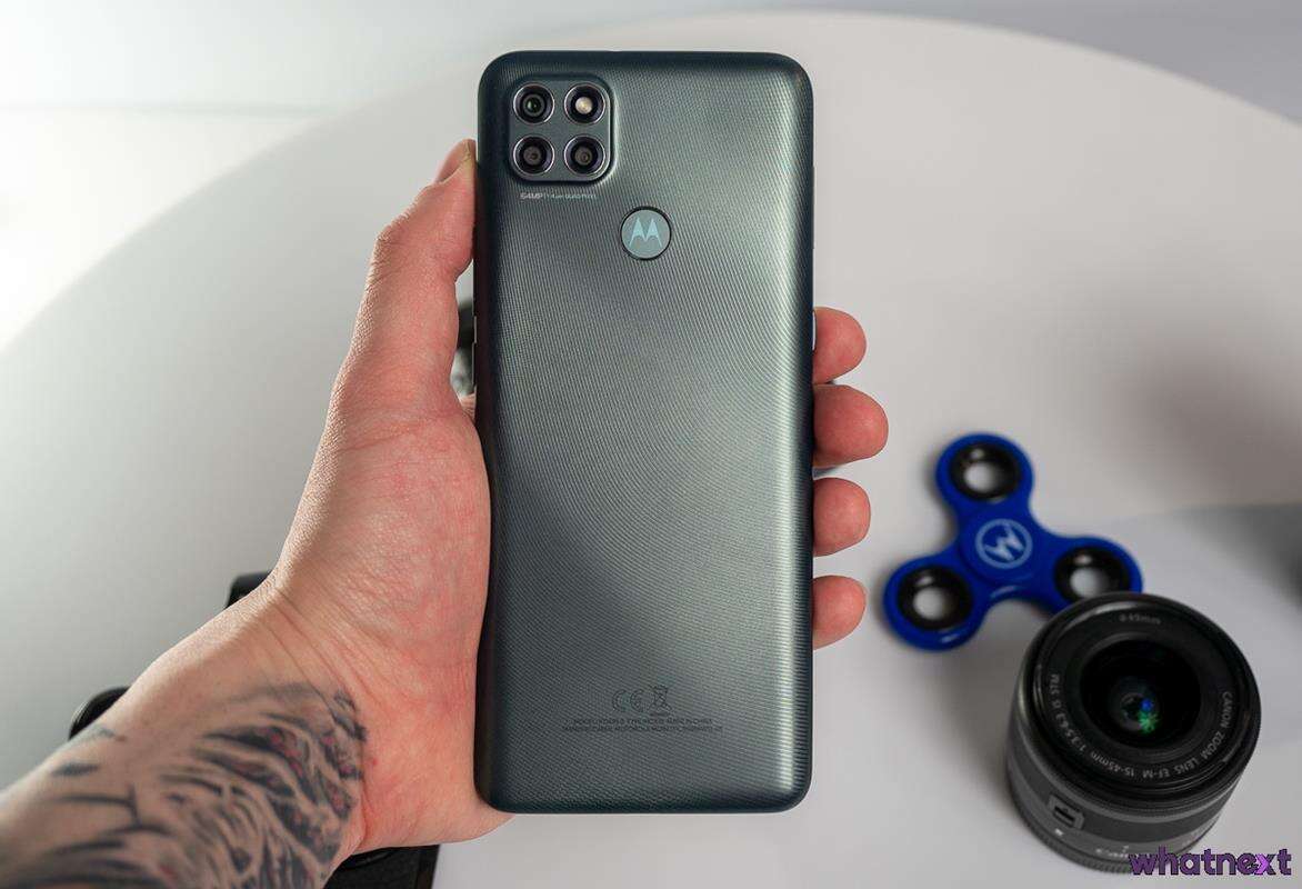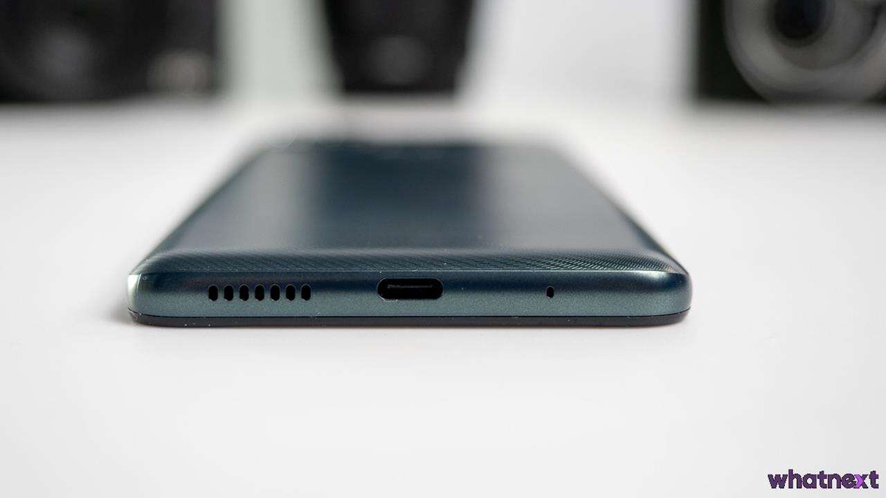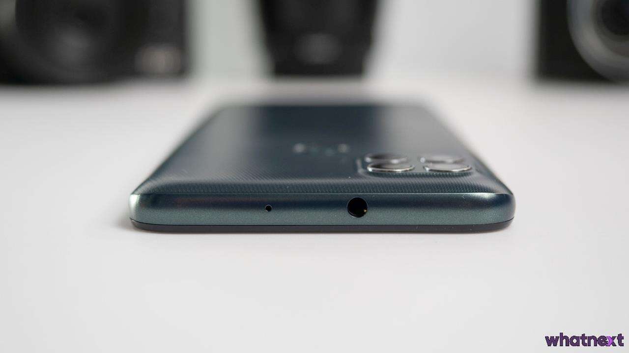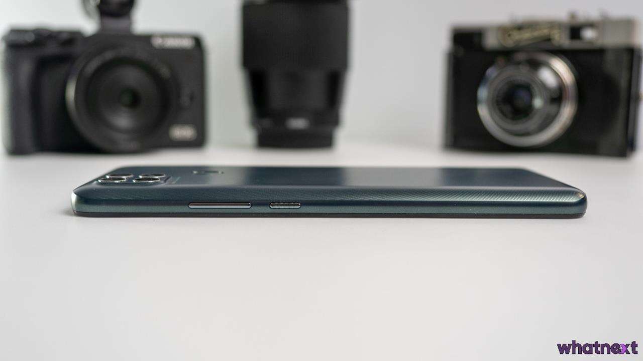 Na górnej krawędzi oddzielonej od plecków i wyświetlacza ramki znajdziemy mikrofon i złącze słuchawkowe jack 3,5 mm, a na dolnej jeden głośnik za maskownicą, port USB-C na samym środku oraz mikrofon do rozmów. Na prawej krawędzi wygospodarowano zgodnie z oczekiwaniami dwuklikowy przycisk do regulacji poziom głośności i wyróżniający się chropowatą powierzchnią przycisk on/off. Na lewej z kolei Motorola uznała, że dodatek dedykowanego dla Asystenta Google przycisku jest tym, czego potrzebujemy, a tuż nad nim znajdziemy hybrydową tackę na karty nanoSIM i microSD w konfiguracji 1×1 lub 2×0.