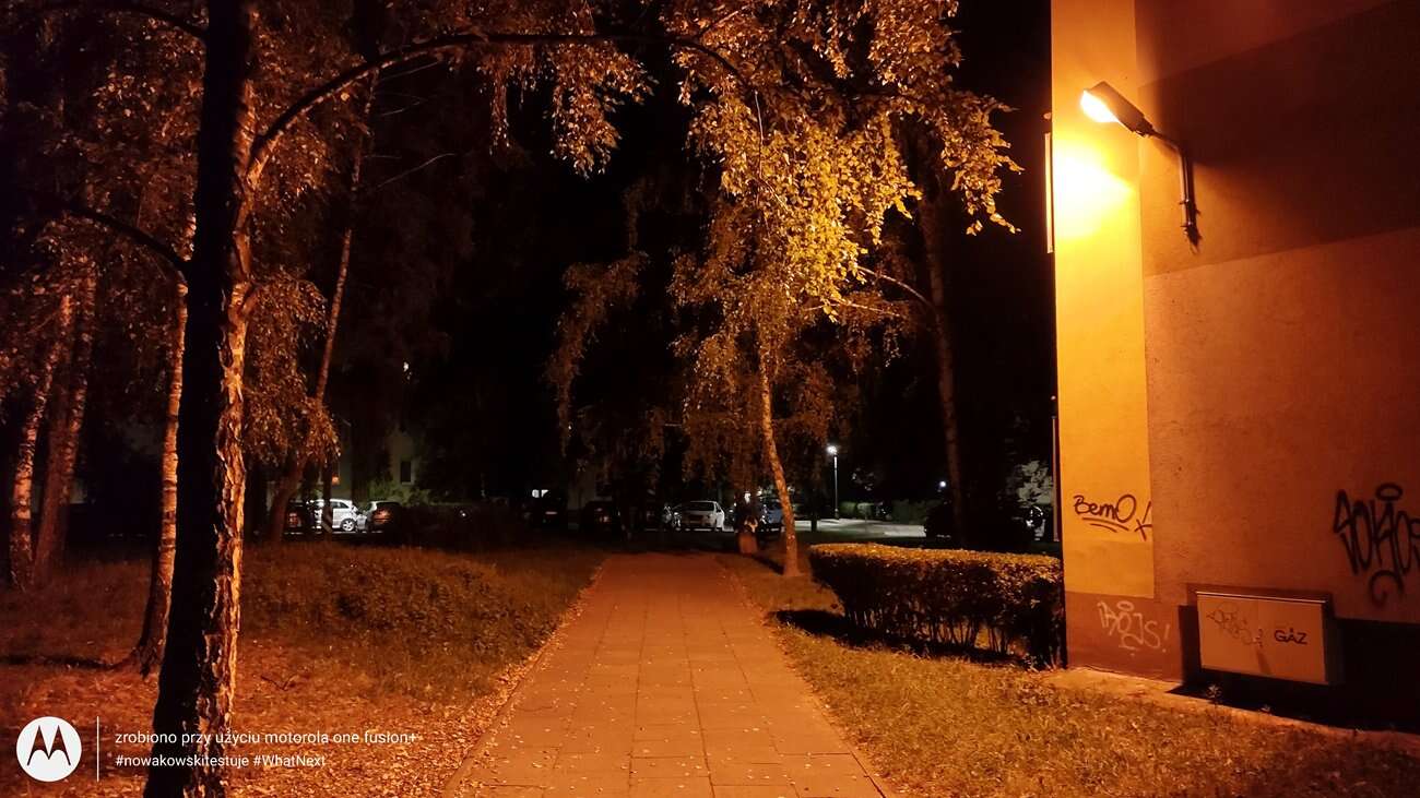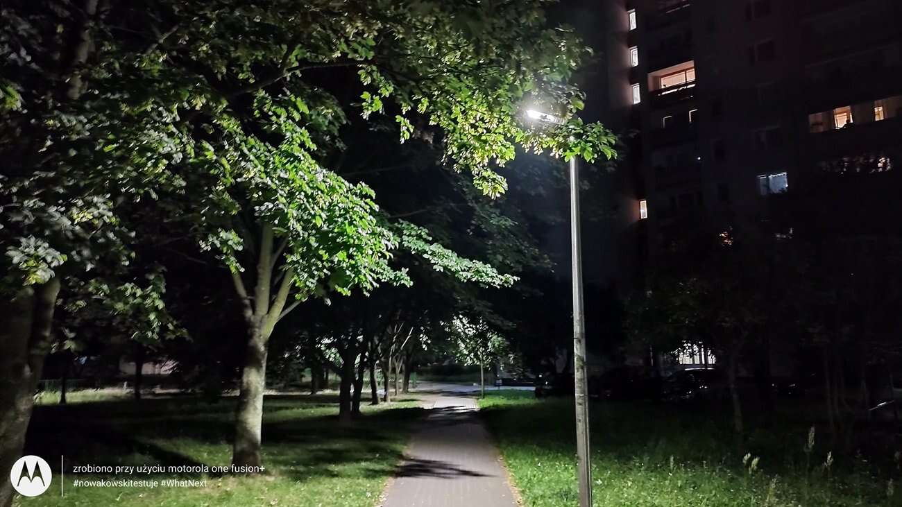 Zdjęcia nocne również wychodzą ładnie, ALE tylko jeśli ich nie powiększamy. Wtedy w oczy rzuca się od razu bardzo niska szczegółowość, spowodowana agresywnym odszumianiem. Poza tym aparat dobrze dobiera balans bieli i nie występuje efekt flary przy źródłach światła. Tryb nocny wyraźnie pomaga w wydobyciu szczegółów z ciemnych miejsc, ale na spektakularne efekty nie ma co liczyć. Tu ich nie ma.