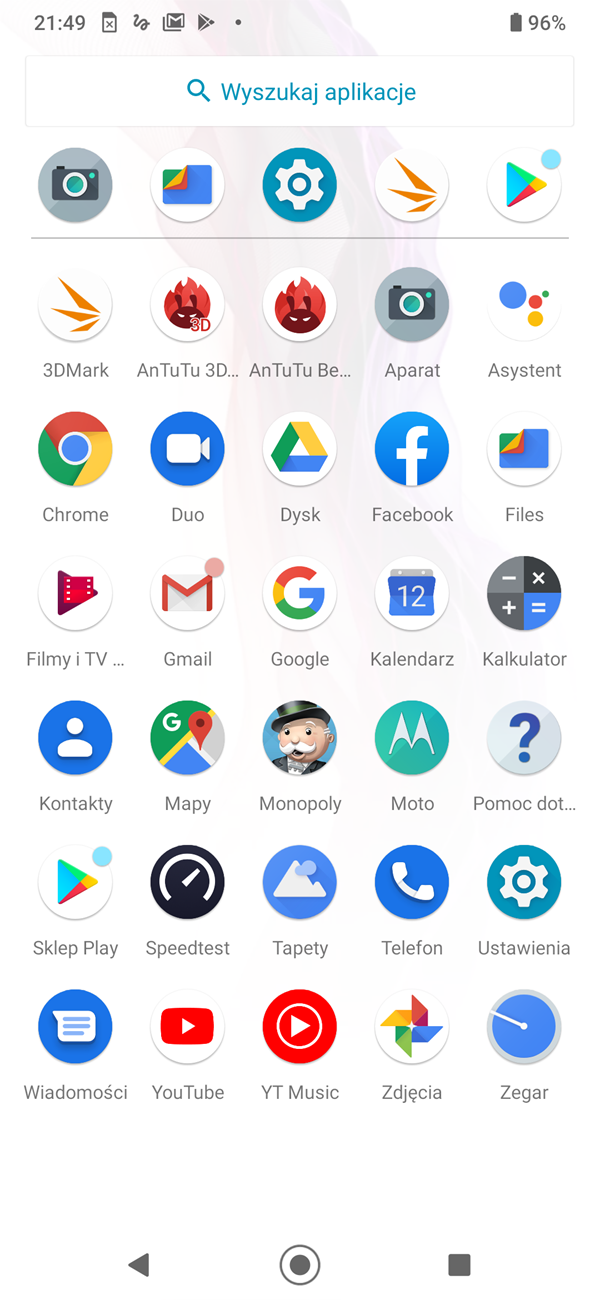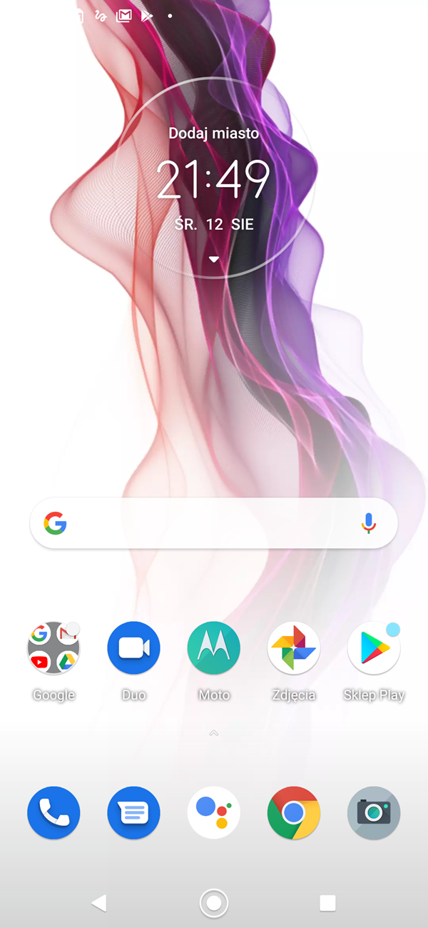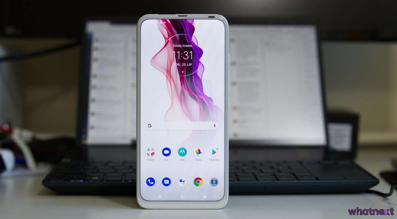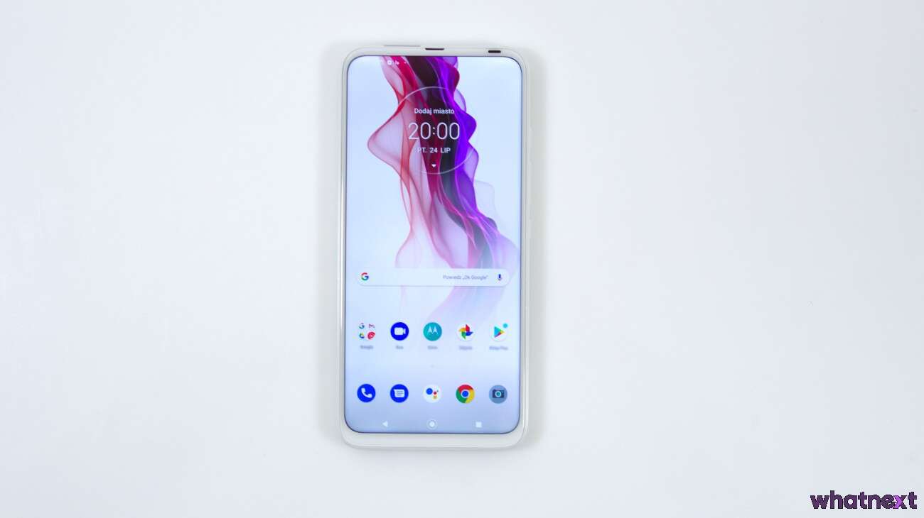 Smartfon działa w oparciu o Androida 10 z nakładką My UX, która wyglądem bardzo przypomina czystego Androida. Od siebie producent dodał tylko kilka tapet, charakterystyczne dźwięki czy rozbudowaną obsługę gestów. Jest również tryb nocny dla menu i kilka przeinstalowanych aplikacji – np. Facebook. Motorola mocno stawia na integrację z Asystentem Google, co jest widoczne zwłaszcza przez dedykowany mu przycisk na bocznej krawędzi. Całość działa bardzo płynnie – na żadne klatkowanie animacji narzekać nie będziemy.