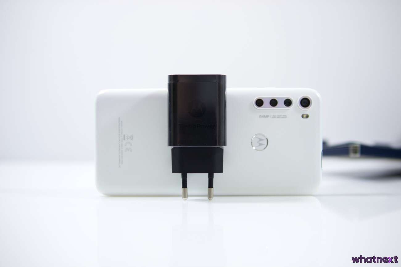 Smartfon obsługuje szybkie ładowanie Turbo Power, a 18 W ładowarkę znajdziemy w zestawie. Czasy ładowania przy jej użyciu zdecydowanie nie powalają na kolana w dzisiejszych czasach: