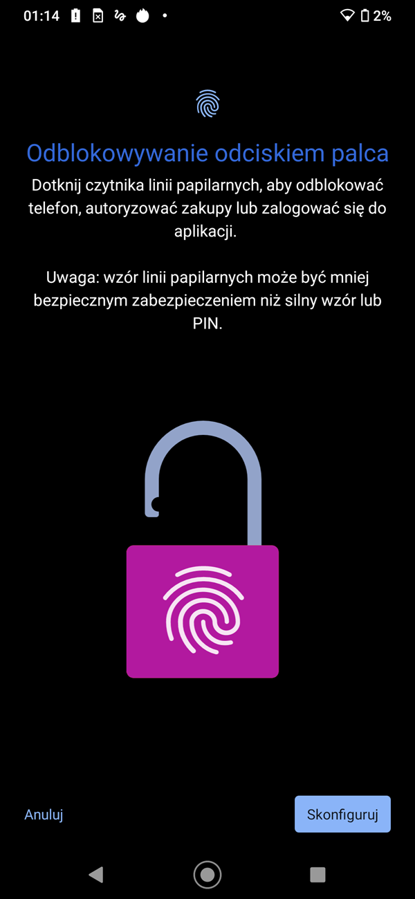Poza tym możemy skorzystać z zabezpieczenia hasłem lub wzorem. Producent nie przewidział możliwości odblokowania smartfonu za pomocą skanu twarzy. Szkoda.