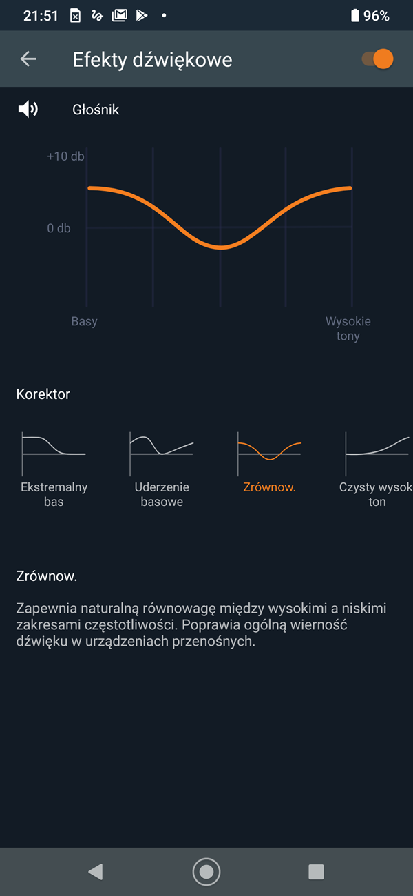 Ponadto w ustawieniach znajdziemy wiele predefiniowanych ustawień barwy dźwięku.