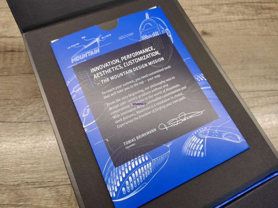 Firmie Mountain nie jest obcy Kickstarter, a więc i początkowa dbałość o pierwsze wrażenia, pomysłowość i po prostu rzetelne podejście do swoich produktów, jak to przy startupach bywa. Stąd zapewne świetnej jakości, twardy karton, sugerujący nam charakterystyczne połączenie barw dla Mountain.