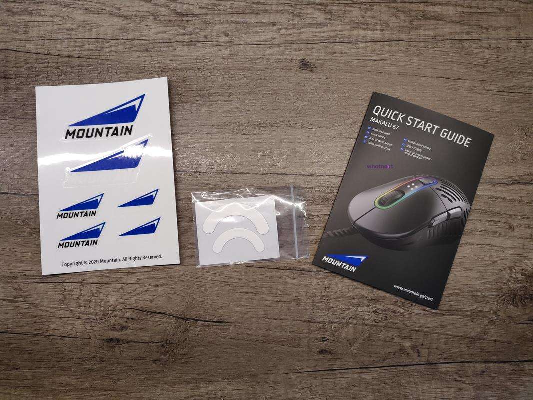 Otwieramy go niczym szkatułkę, po czym wita nas „list” i podpis założyciela firmy Tobiasa Brinkmanna, który przedstawia podejście firmy do produktów. W przemyślanej zakładce znajdziemy instrukcję obsługi, wiele naklejek oraz zestaw wymiennych ślizgaczy. Myszka Makalu 67 spoczywa spokojnie z kolei w twardej piance, jak zresztą jej przewód z gumową opaską do zarządzania przewodami.