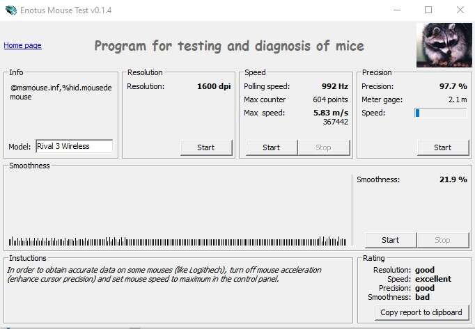 Potwierdzają to powyższe wyniki w programach, które sugerują okazjonalne wariactwo Rival 3 Wireless przy szybkich ruchach, ale są to szczególiki, na które trudno zwracać uwagę, nie będąc czepialskim testerem. Do gier ten model będzie idealny, a słaby wynik pod kątem smoothingu jest spowodowany samą łącznością, bo myszy bezprzewodowe zwykle w tym programie polegają.