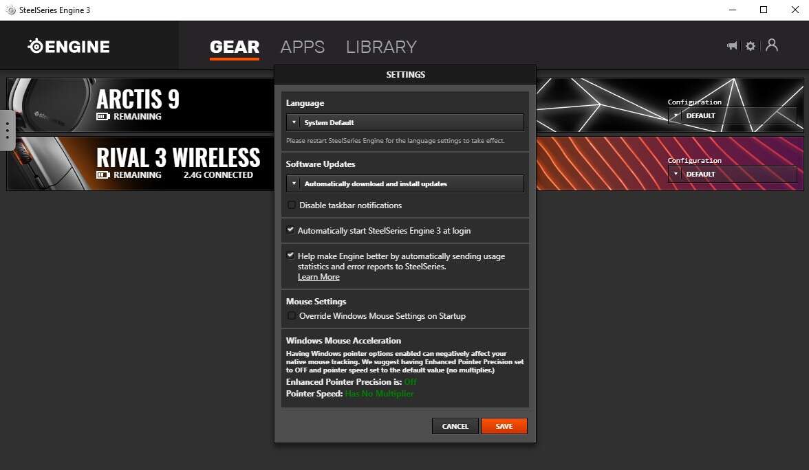 W ramach swoistego HUBu w aplikacji SteelSeries Engine 3 możemy pobawić się sporą liczbą funkcji. Producent nie zapomniał o tradycyjnej opcji zapisywania kilku profili (również w pamięci myszki), podpinania ich do konkretnych aplikacji, czy połączenia ze sobą efektów podświetlenia różnych produktów SteelSeries.