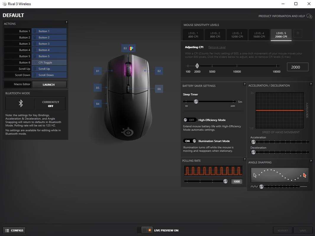 Ciekawymi dodatkami jest ustawienie akceleracji oraz deceleracji, jak również nasilenia Angle-Snapping, a całość dopełniają kwestie dotyczące stricte baterii, a mianowicie czasu uśpienia, aktywacji trybu energooszczędnego i inteligentnego podświetlenia.
