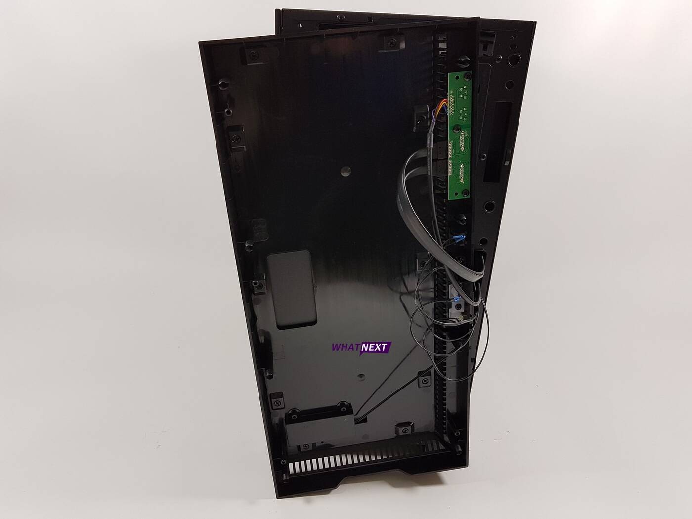 Wnętrze jest bardzo podobne do tego w obudowie Sharkoon TG5 – widoczne są niektóre identyczne rozwiązania. P8 posiada dwie strefy, które oddzielone są metalową obudową. Na niej znajdują się dwa miejsca na dyski 2,5 cala oraz otwory do przeprowadzenia kabli. Także z przodu znajduje się duży otwór umożliwiający montaż chłodnicy. System zarządzania okablowaniem jest bardzo dobry. Obok miejsca na płytę główną widoczna jest metalowa osłona. Pozwoli ona na przeprowadzenie tamtędy kabli przy zachowaniu dobrego efektu wizualnego. Także z tyłu jest sporo przestrzeni na okablowanie (do 25 mm). W miejscu montażu płyty głównej widoczny jest duży otwór, który pozwala na szybki montaż chłodzenia procesora. Z tyłu P8 znajdują się kolejne dwa miejsca montażowe dla dysków 2,5 cala. Łącznie jest więc miejsce dla 4 dysków 2,5 cala. W obudowie można zmieścić kartę graficzną o długości do 390 mm i chłodzenie procesora o wysokości do 165 mm.
