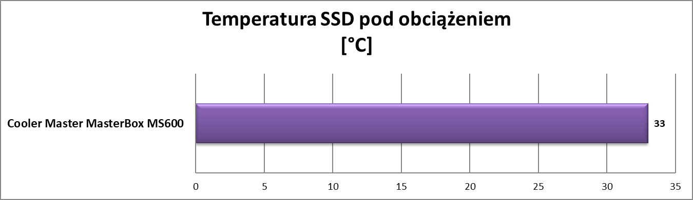 Sprzęt w Cooler Master MasterBox MS600 chodzi w miarę cicho – dołączony wentylator nie powinien przeszkadzać. Za to temperatury są bardzo wysokie. Obudowa nie radzi sobie z mocniejszym sprzętem. Wynika to z zabudowanej góry oraz braku przednich wentylatorów. Temperatury są bardzo wysokie i trzeba zaopatrzyć się w dodatkowe śmigła.