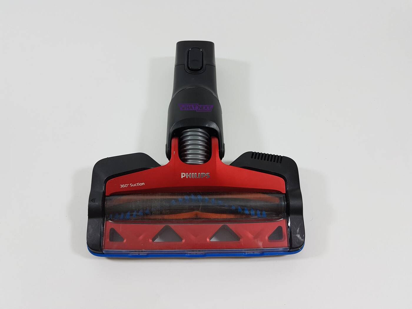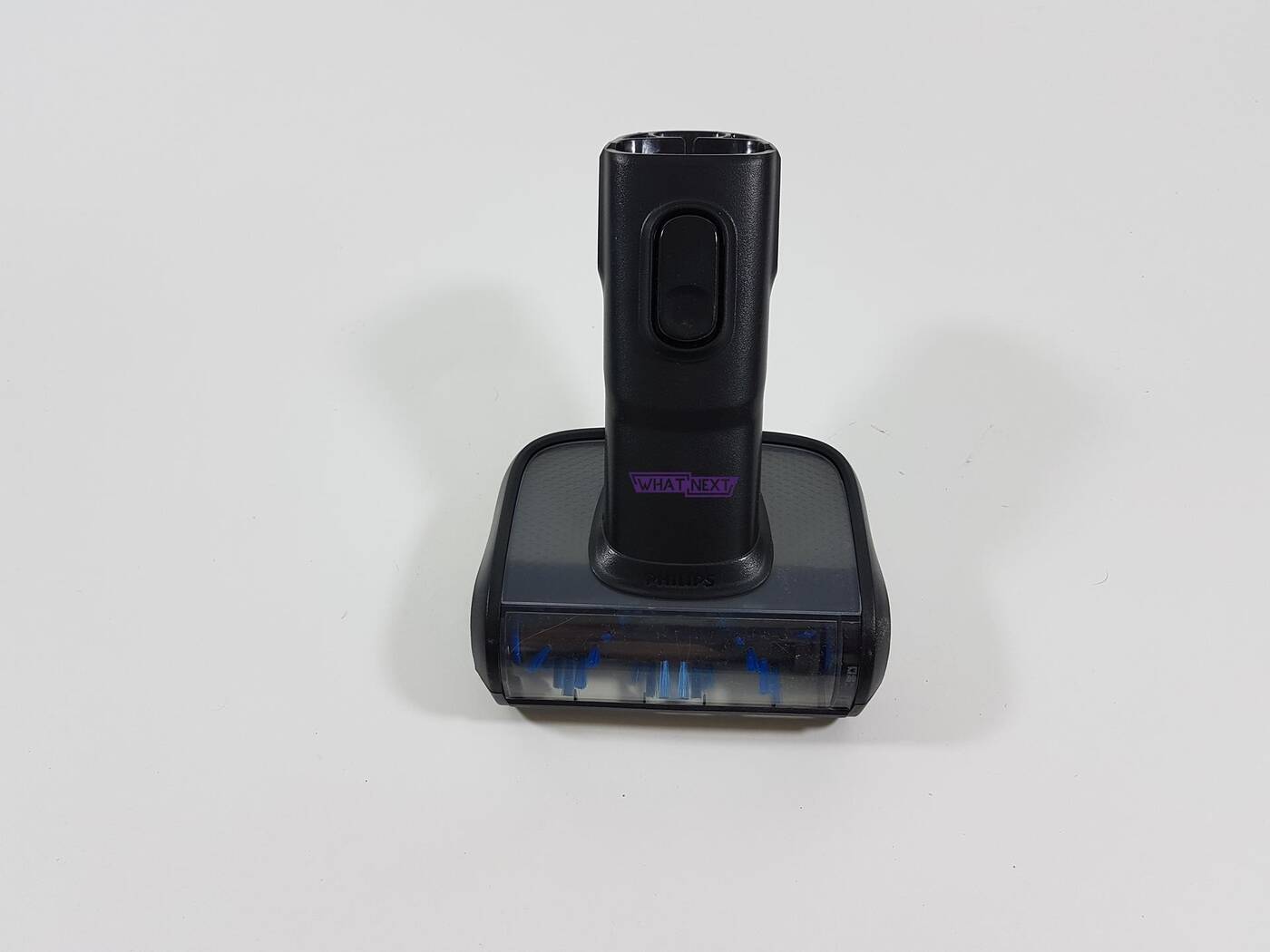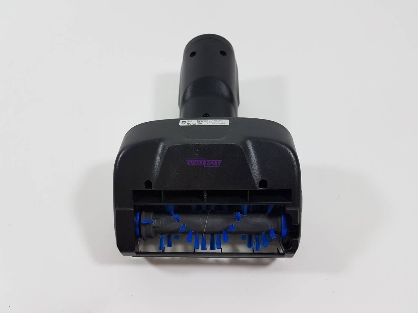 Ostatnia rzecz to szczotki. Zacznijmy od tej większej. Producent nazywa ją nasadką zasysającą 360°. Nazwa wynika z faktu, że zasysa ona wszystko dookoła niej. Nie jest tak, że wciągnie ona tylko brud leżący przed nią czy po najechaniu na niego, ale także obok niej czy przed nią. Ważną rzeczą jest podświetlenie LED, które pozwala zlokalizować każde zabrudzenie. W zestawie otrzymujemy także mini elektroszczotkę, która sprawdzi się podczas używania odkurzacza ręcznego czy przy czyszczeniu węższych miejsc.