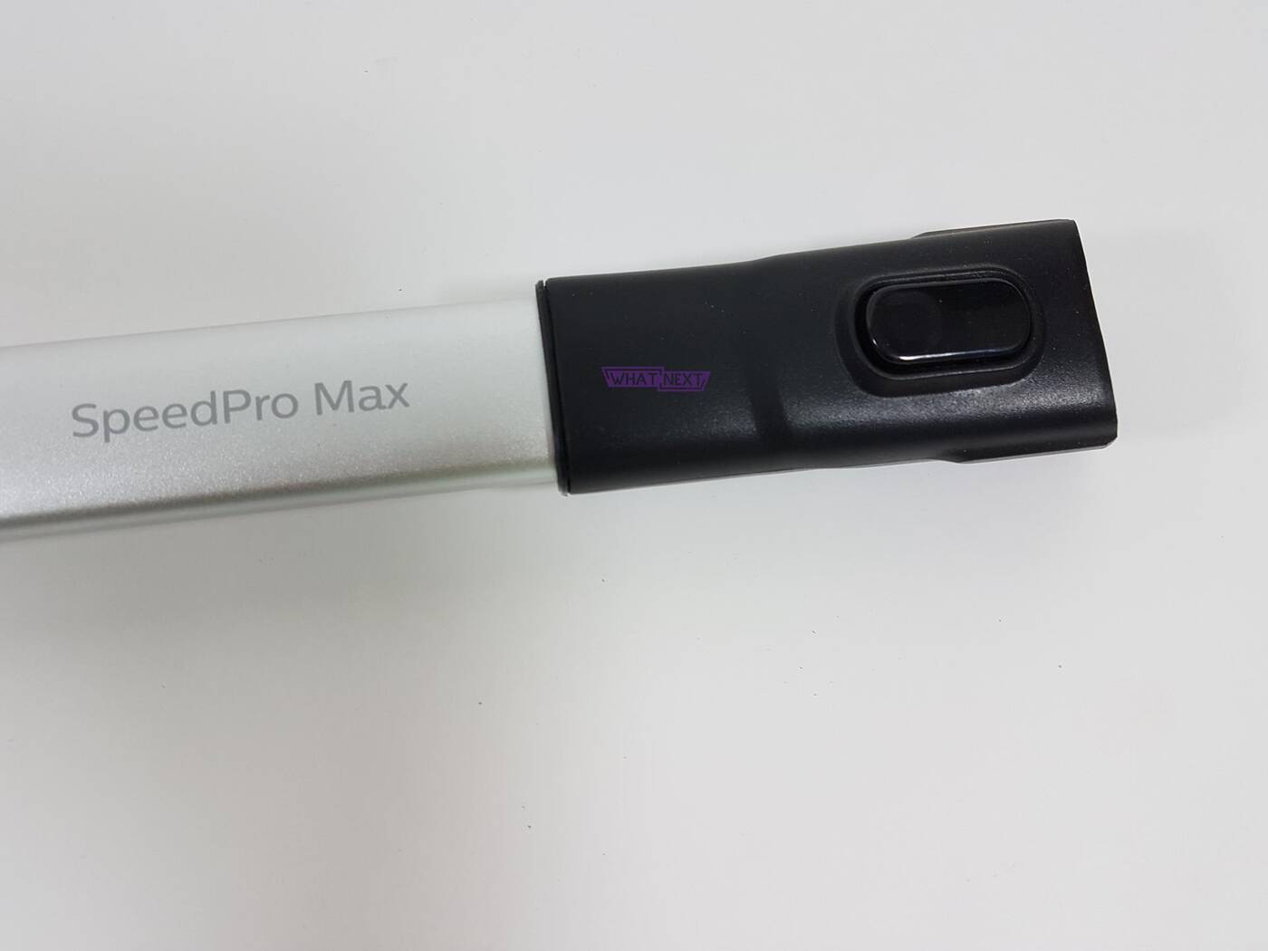 Standardowo opis zacznę od użytkowania. Odkurzacz waży 2,73 kg, więc nie jest on jakiś ciężki, natomiast po dłuższej pracy z nim można to odczuć. Dzięki wygodnej rączce i umieszczonymi nad nią przełącznikiem pracy i wyświetlaczem bardzo łatwo można dopasować tryb pracy do aktualnych wymagań. Sama wysokość jest odpowiednia dla dorosłych osób, więc tutaj też jest dobrze. Podczas użytkowania zwróciłem uwagę na dużą ruchomość szczotki zasysającej – można ją ustawić pod każdym kątem, dzięki czemu można spokojnie dostać się pod łóżko, meble czy w różne zakamarki. W czyszczeniu ciemnych miejsc bardzo pomaga podświetlenie LED. Dzięki niemu można wyczyścić dokładnie miejsce pod np. meblami. Także sama wysokość szczotki pozwala na dostanie się w węższe miejsca. Przy użytkowaniu na panelach czy kafelkach nie było problemów – odkurzacz nie rysuje powierzchni i gładko po nich się przesuwa. Natomiast po dywanie trzeba było już użyć siły, aby przesunąć odkurzacz. Na szczęście włosie się nie wkręcało, tak jak to miało miejsce u konkurencji, a sam SpeedPro Max się nie zacinał, co ułatwiało robotę. W przypadku mniej gęstych dywanów czy wycieraczek nie było już żadnych problemów. Obsługa odkurzacza jest banalna. Bardzo szybko i prosto można wymienić końcówki, a także usunąć kurz z pojemnika. To samo dotyczy szczotki, której obracające się elementy można bezproblemowo wyjąć.