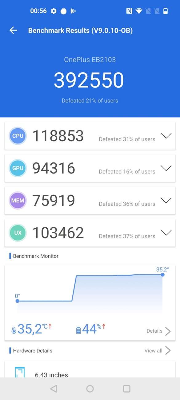 Test OnePlus Nord CE 5G nie mógłby obyć się bez benchmarków i oceny wydajności urządzenia. Smartfon został wyposażony w procesor Snapdragon 750G 5G wraz z grafiką Andreno 619 i 8 lub 12 GB pamięci RAM. Oto jak ten zestaw wypada w popularnych benchmarkach: